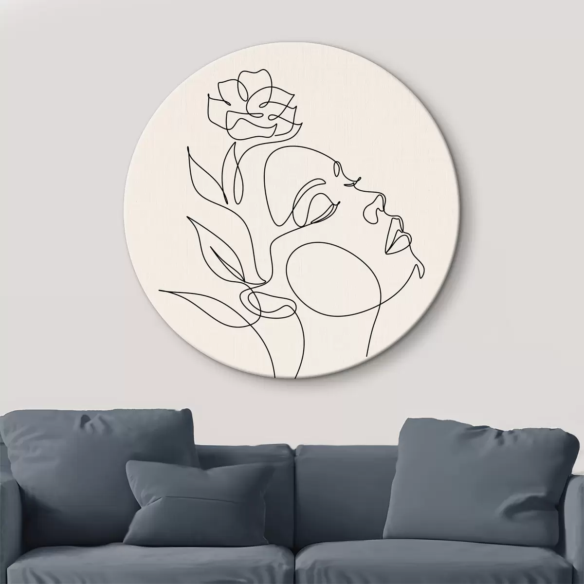 Кругла картина Жіноче обличчя, абстракція, лінія, натуральний Nr r38011