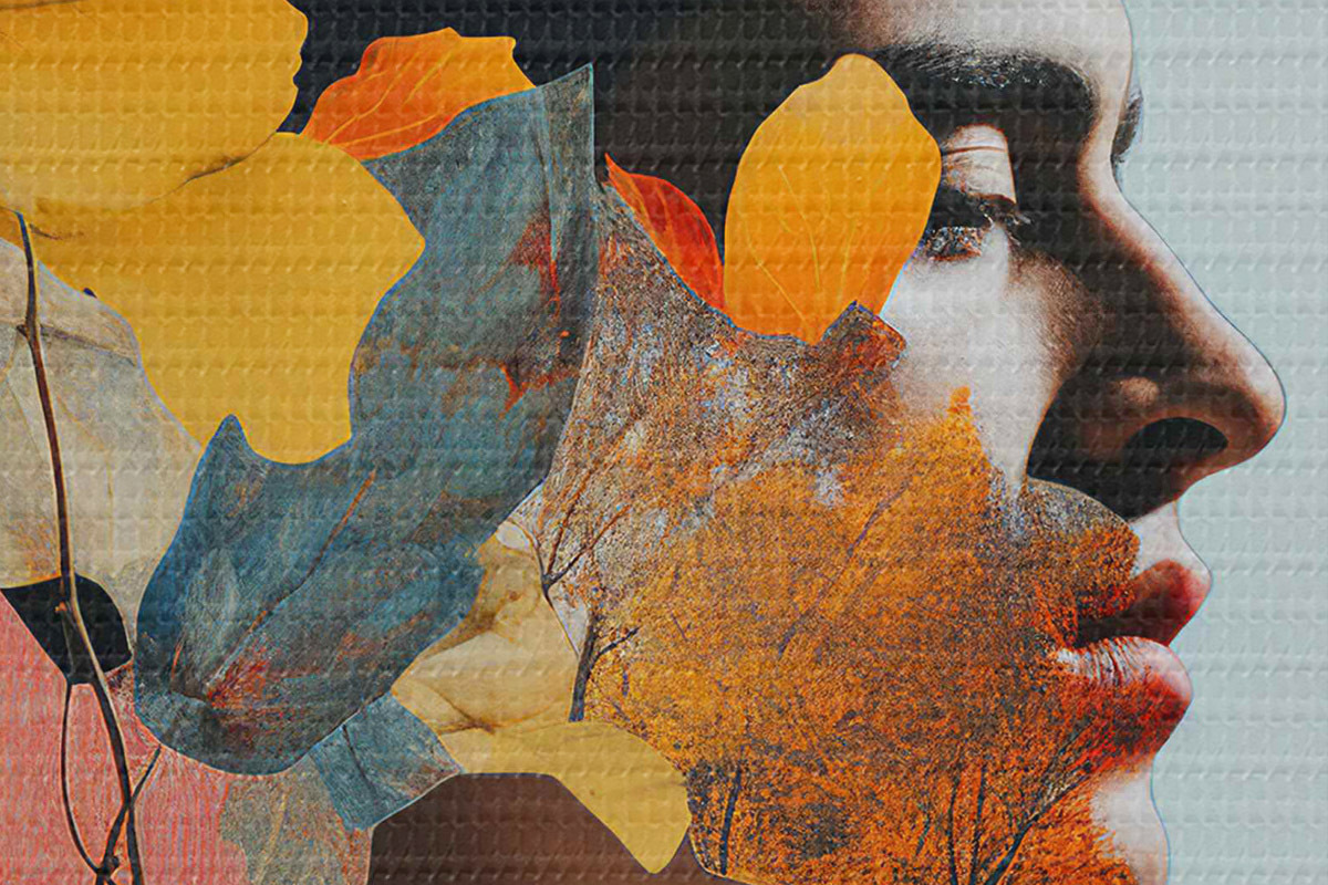 Кругла картина Природа переплітається з людським обличчям Nr r38042
