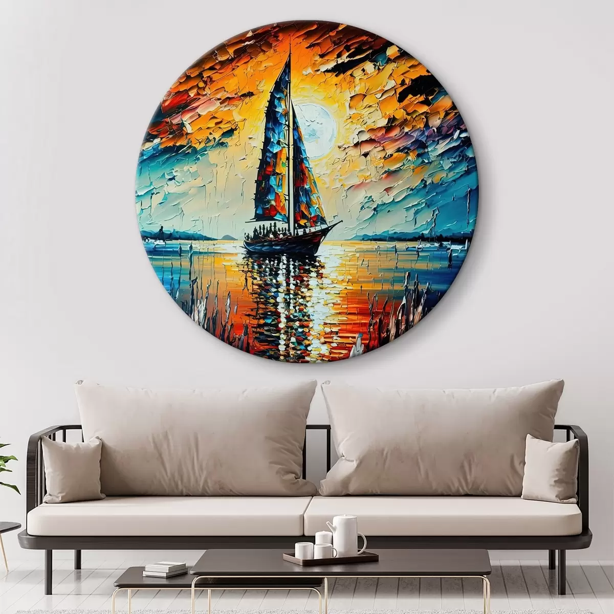 Кругла картина Відпливаючи в яскравий захід сонця Nr r38052