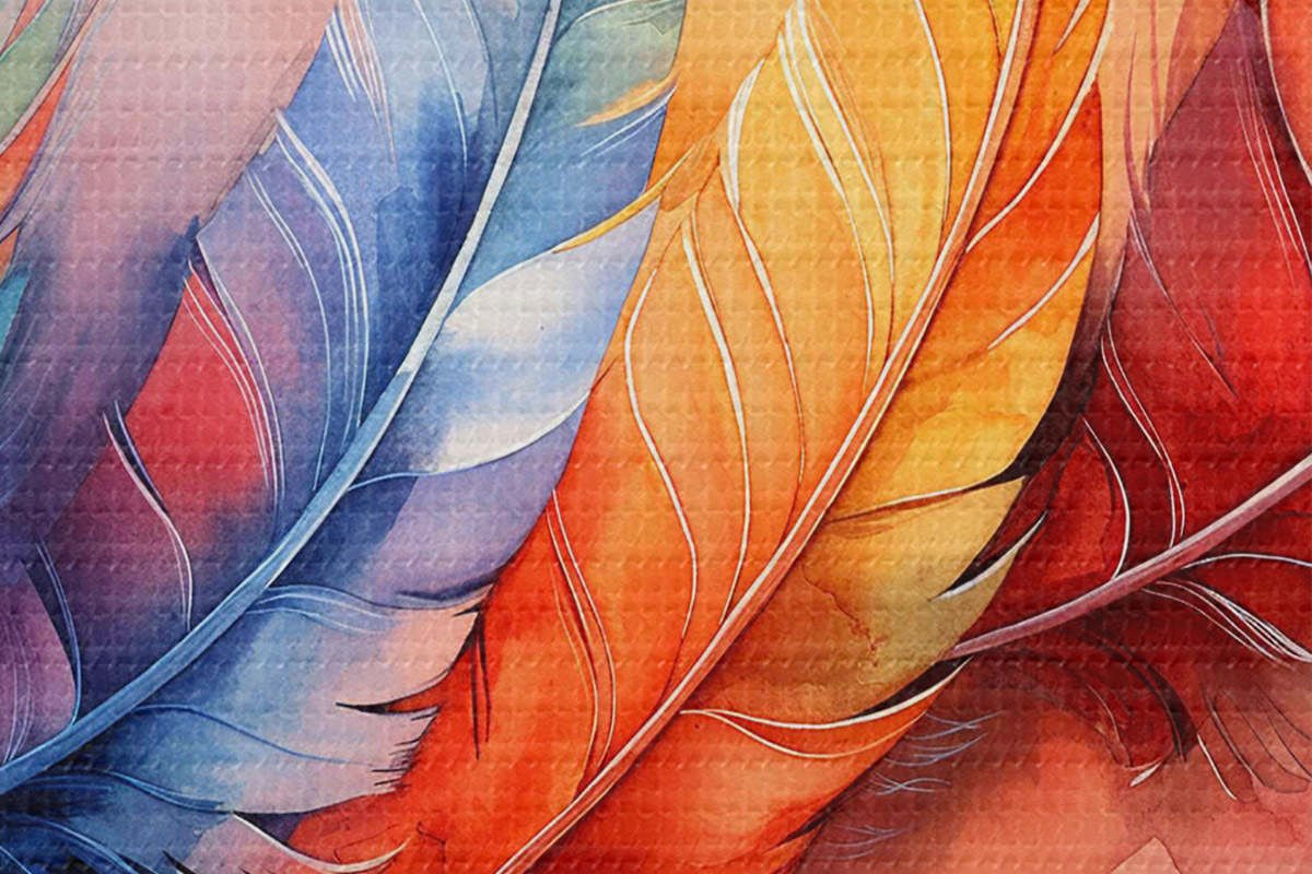 Кругла картина Кольорове пір'я на білому тлі Nr r38094