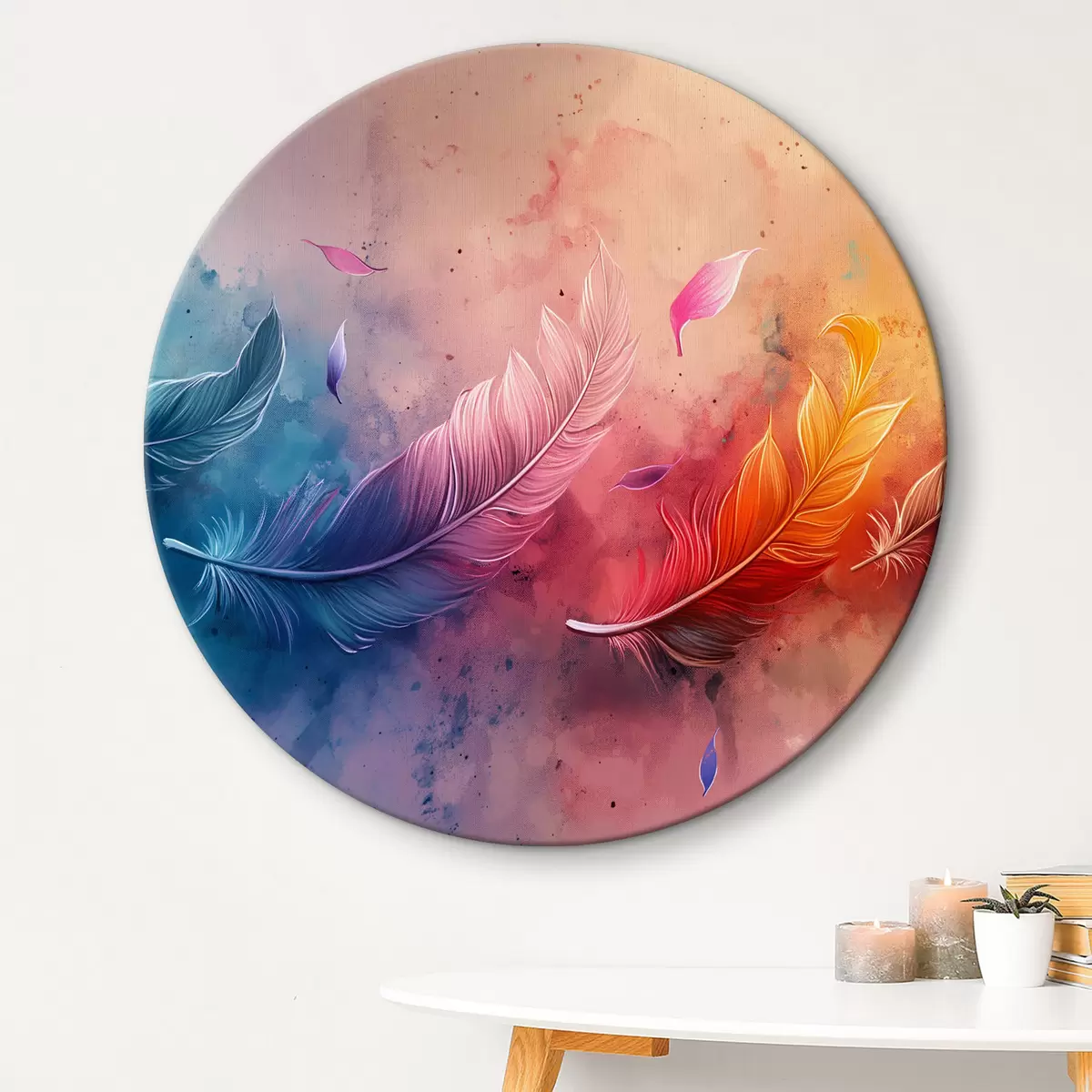 Кругла картина Барвисті пір'я на фоні аквареллю Nr r38095