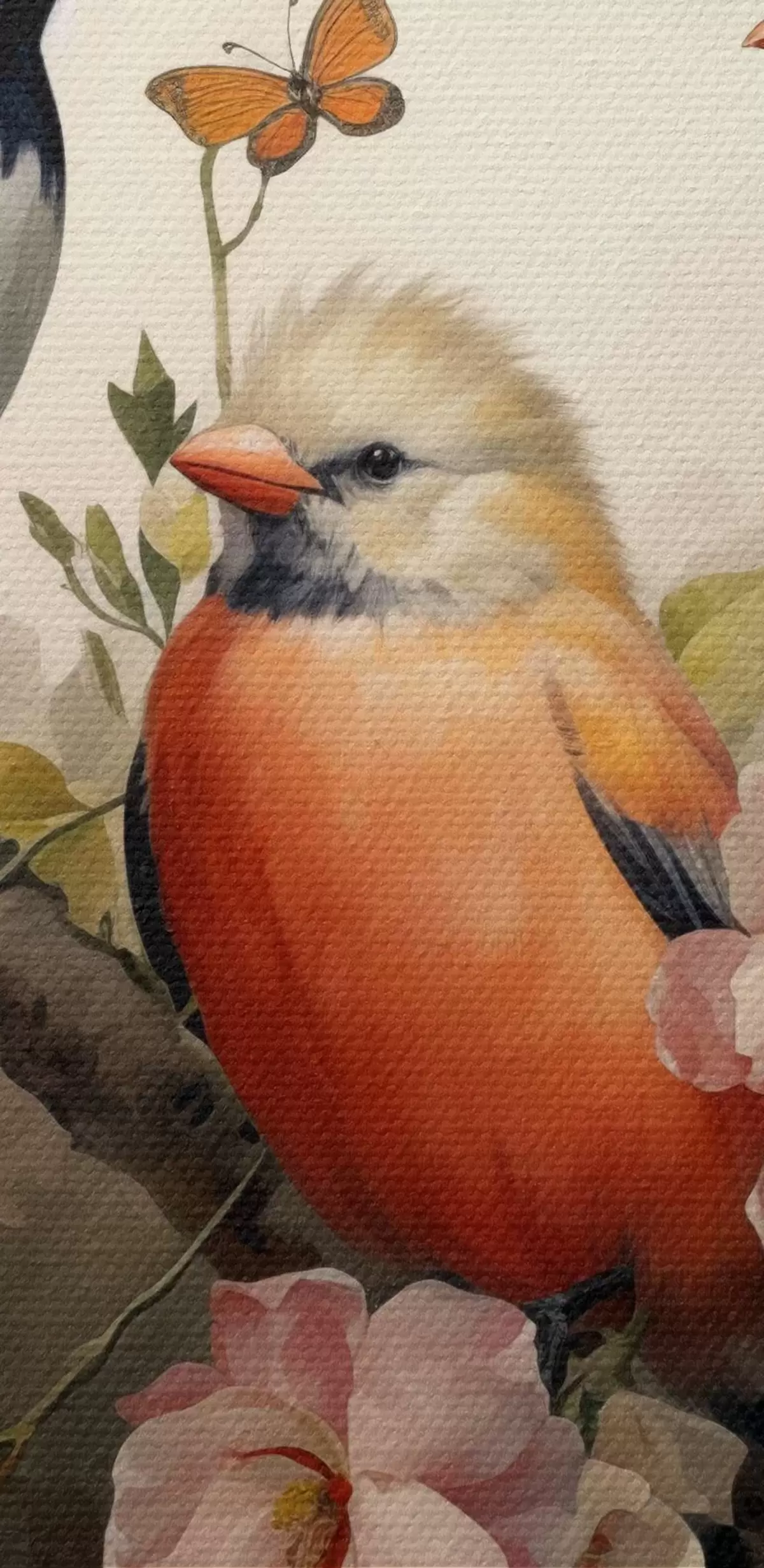 Кругла картина Група птахів на гілці з квітами Nr r38103