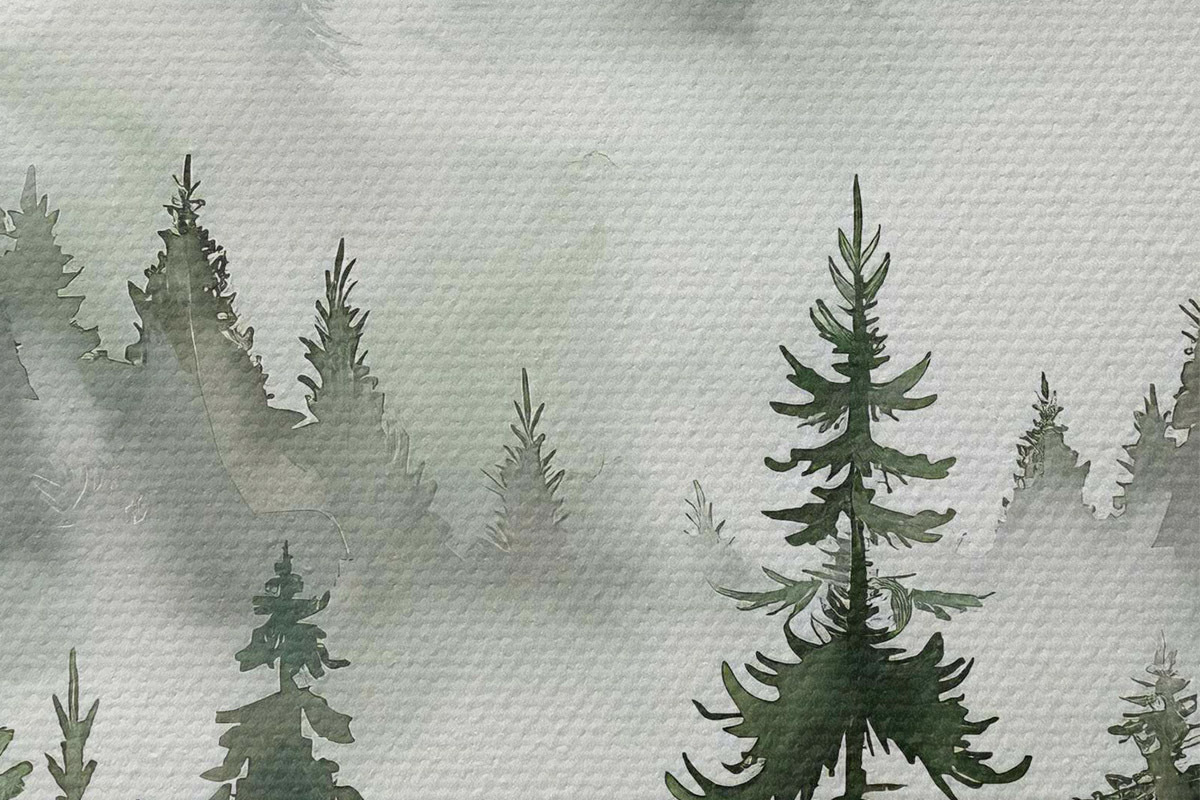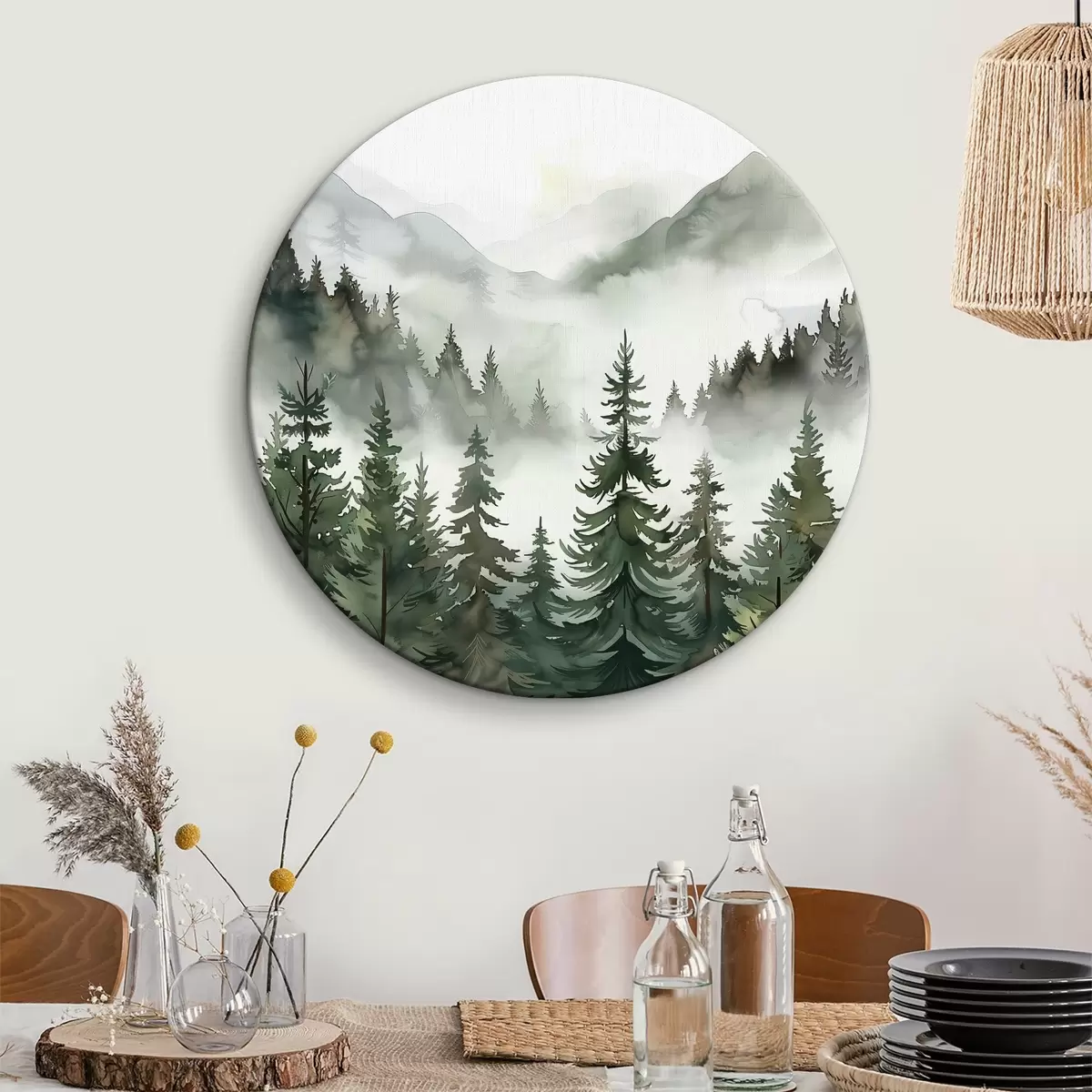 Кругла картина Пейзаж з деревами та горами r38139