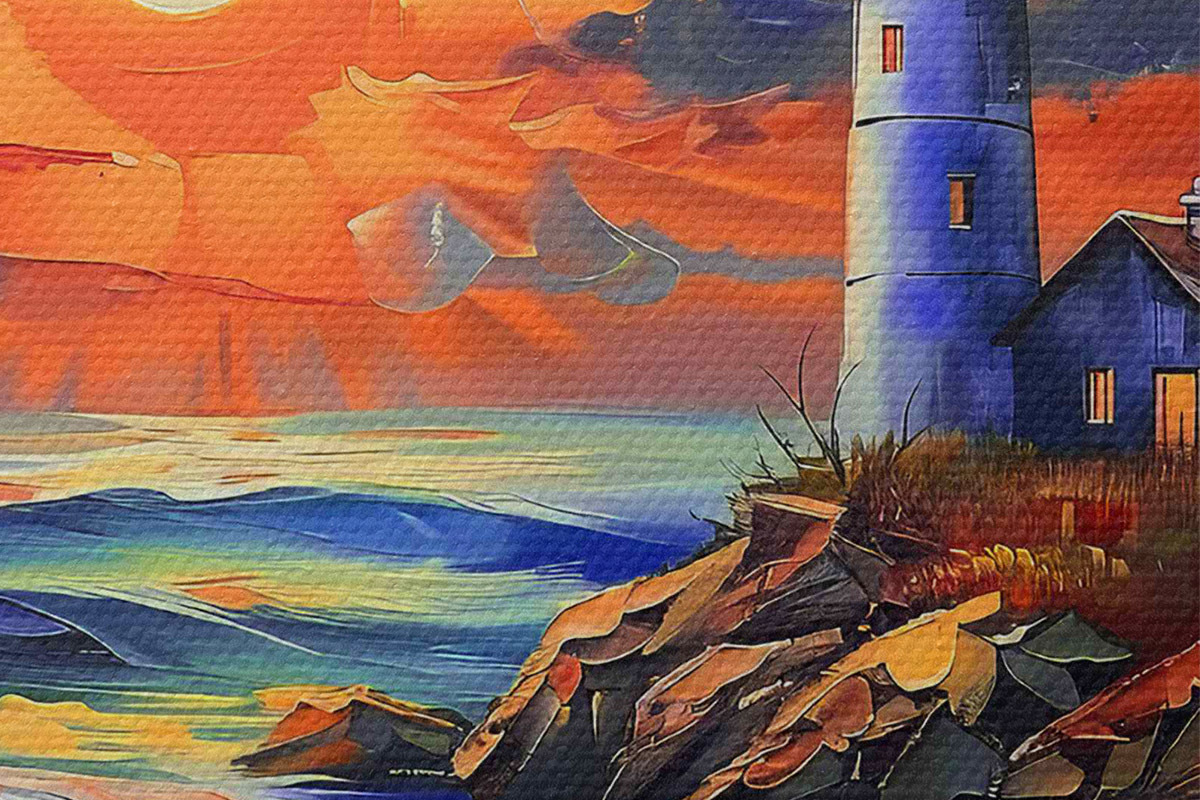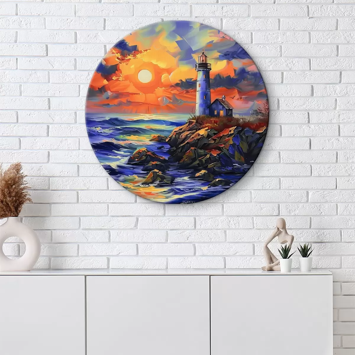 Кругла картина Маяк на заході сонця на березі Nr r38150