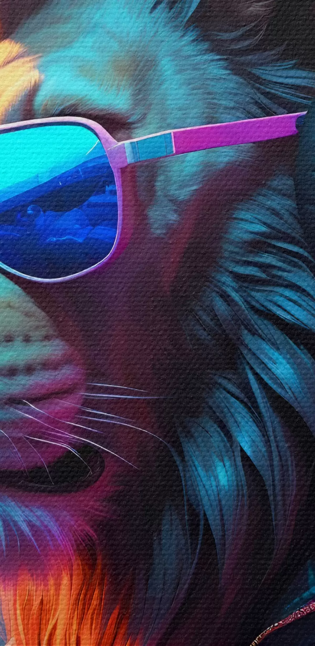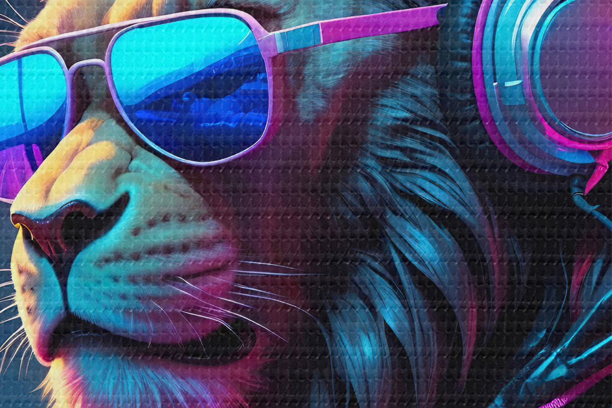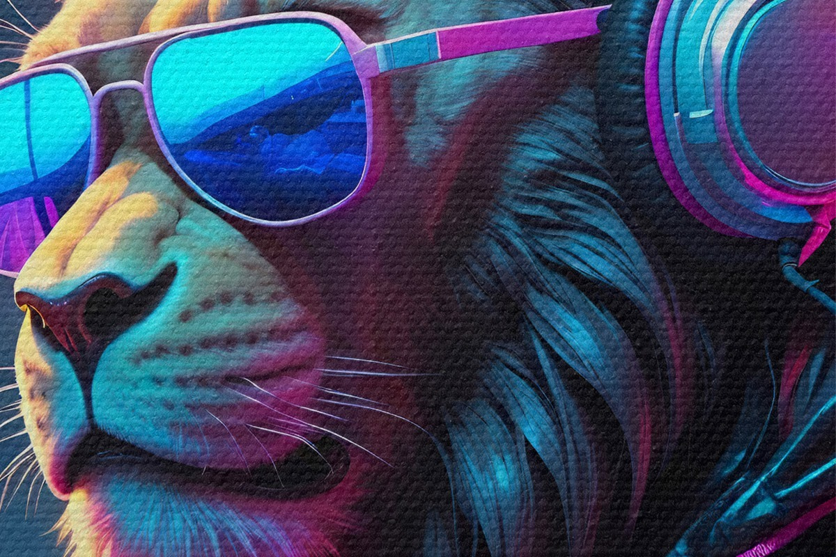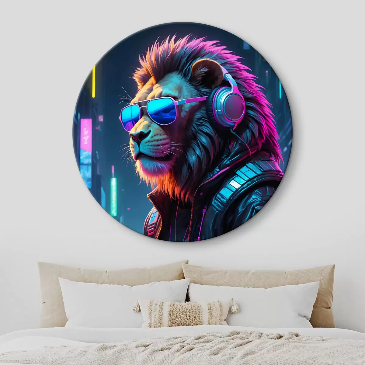 Кругла картина Лев на тлі яскравого міста Nr r38169
