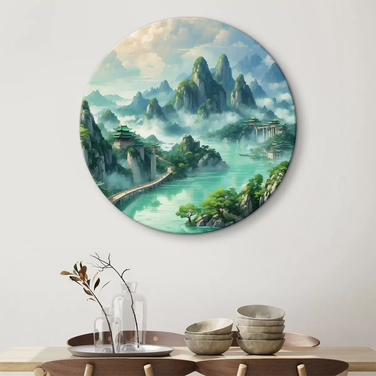 Кругла картина Річка з мостом і будівлями Nr r38184