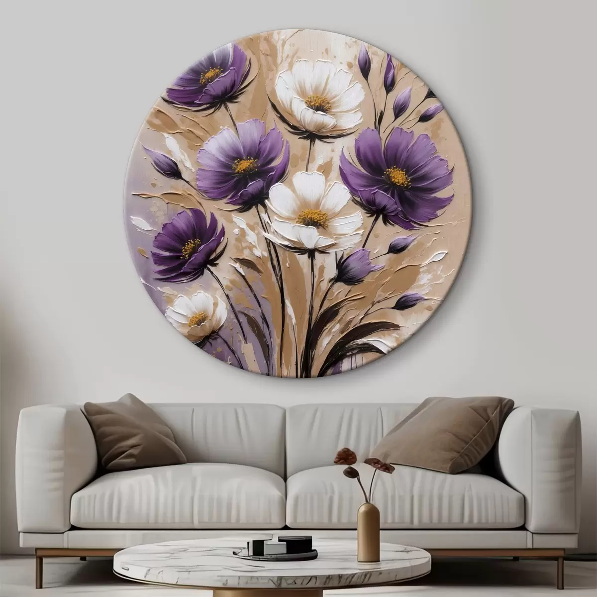 Кругла картина Букет фіолетових та білих квітів Nr r38225