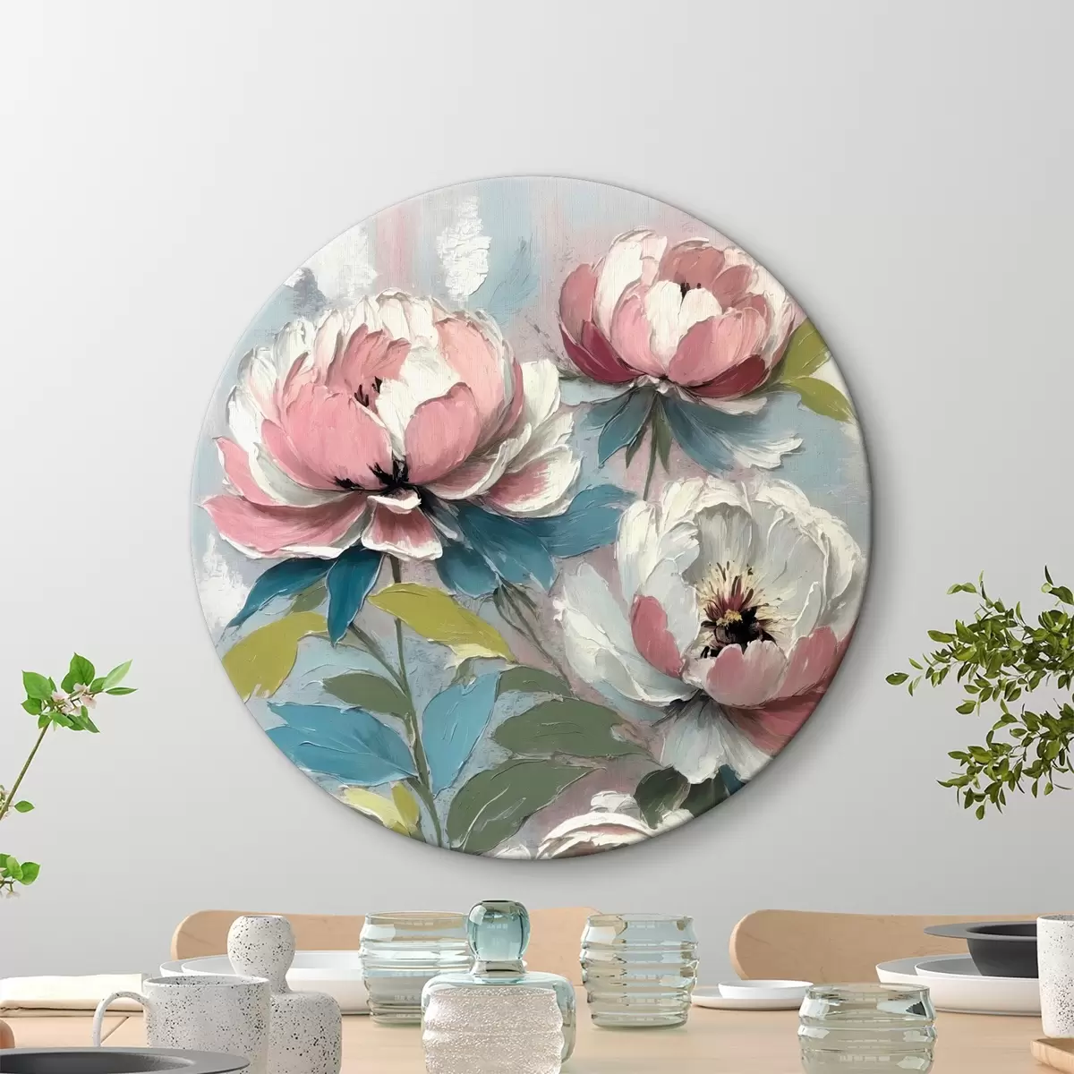 Кругла картина Зображення квітів на синьому тлі Nr r38226
