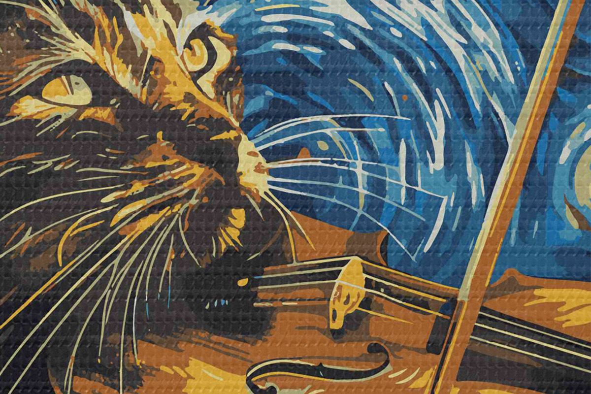 Кругла картина Кіт грає на скрипці Nr r38265