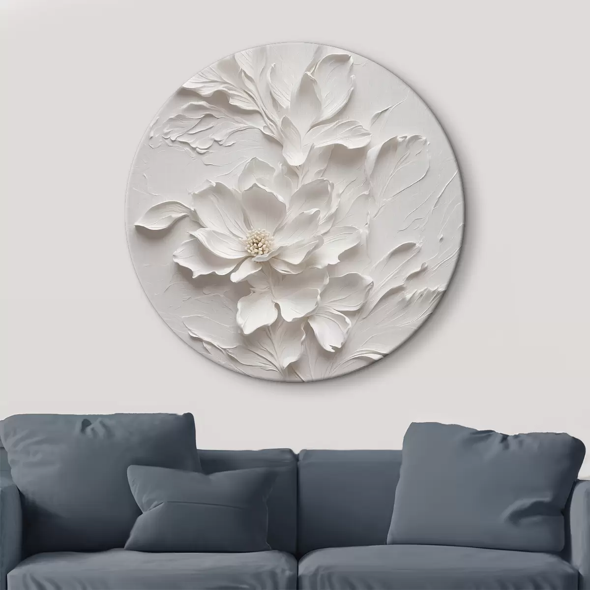 Кругла картина Біла квітка на білому тлі в олії Nr r38305