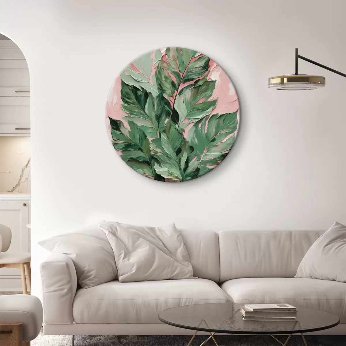 Кругла картина Зображення листя на рожевому тлі Nr r38307