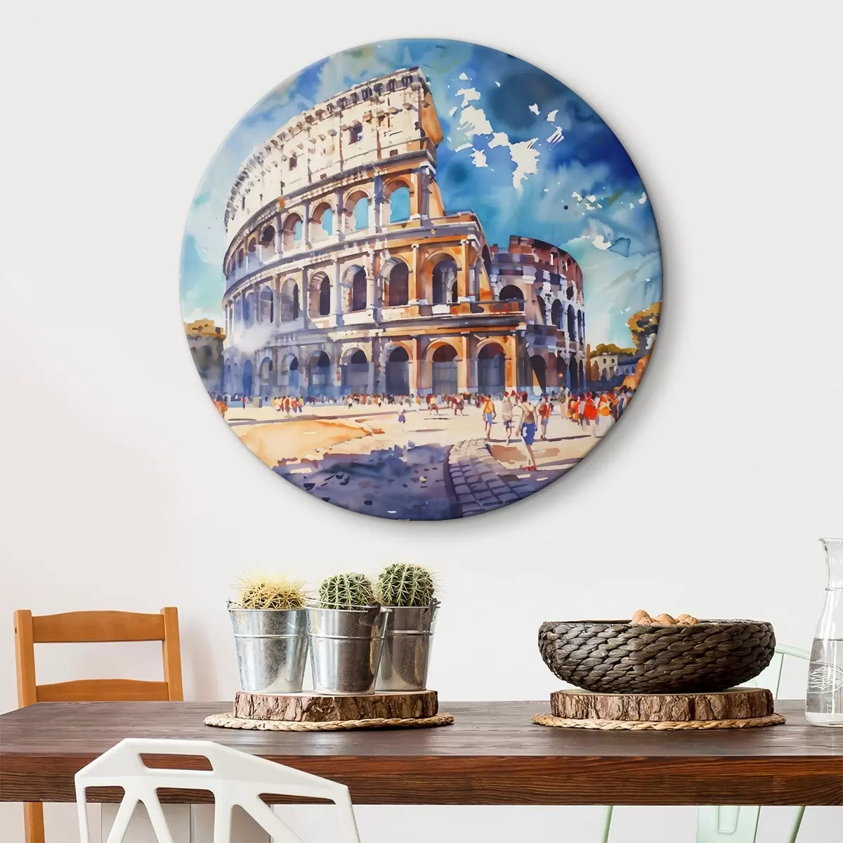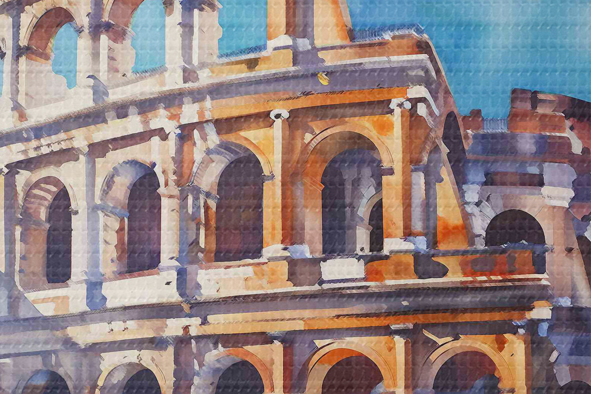 Кругла картина Акварель великої будівлі з багатьма арками Nr r38326