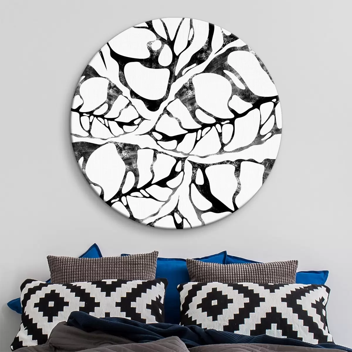 Кругла картина Тропічний Монстера листя візерунок з отворами, мінімалізм, текстурованою, чорний сірий колір, квіткові, завод r38351