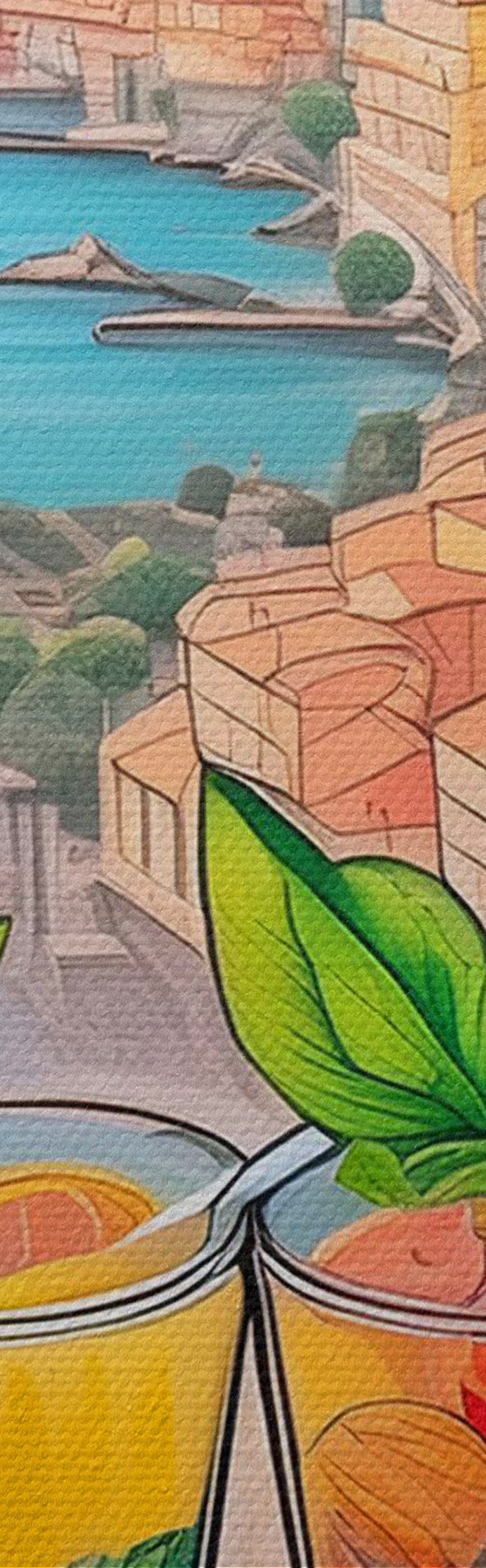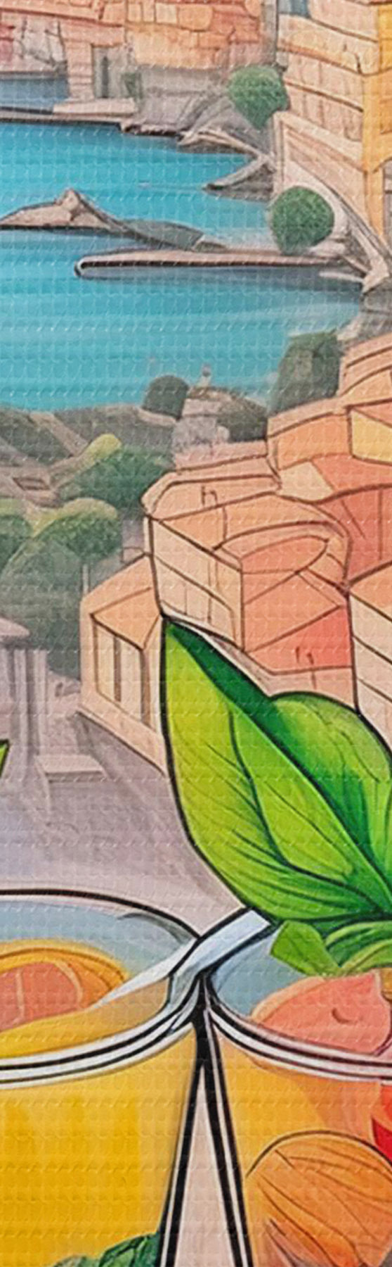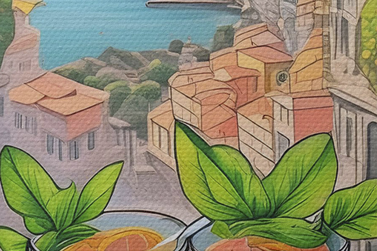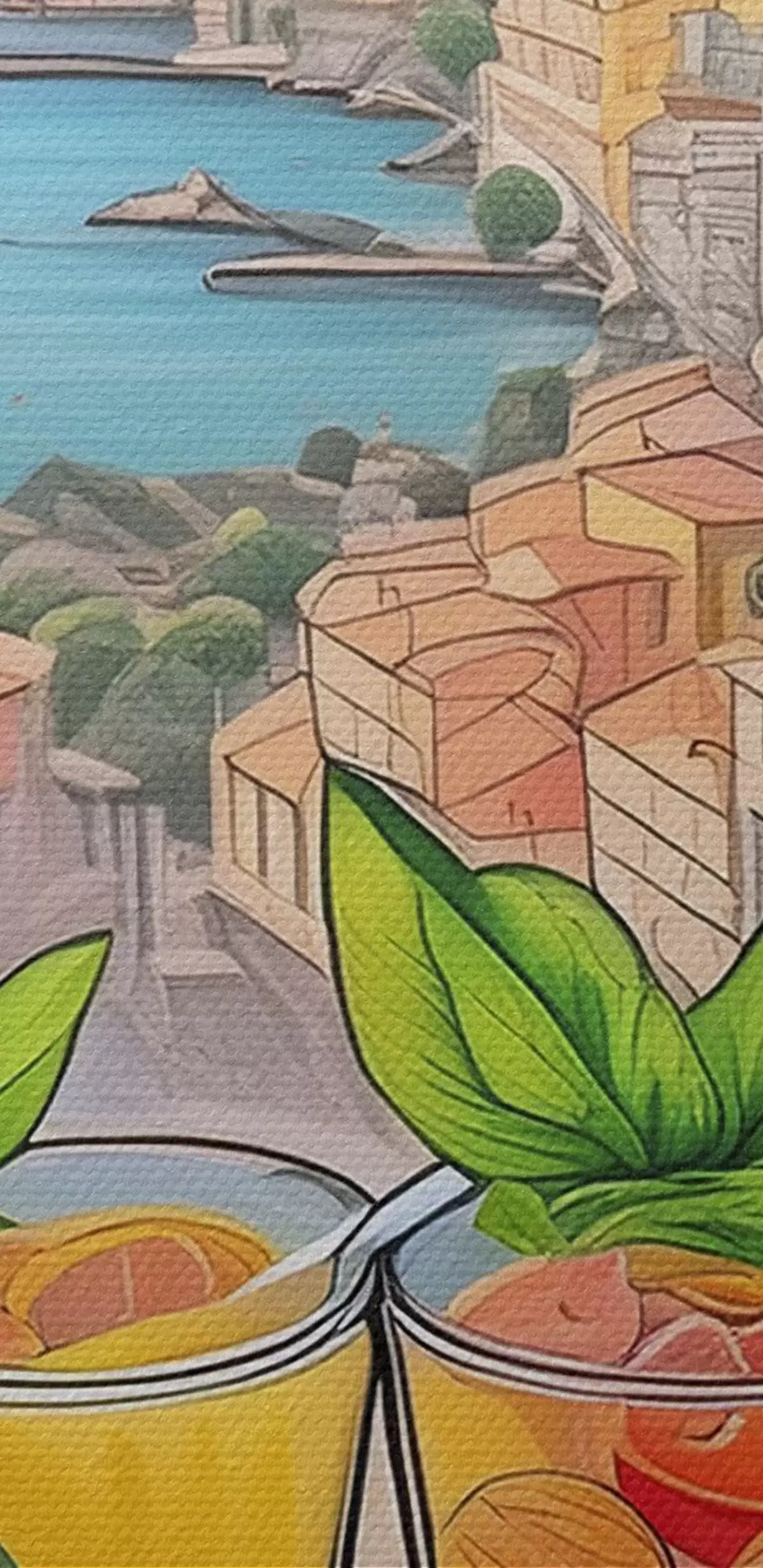 Кругла картина Італійське місто, морське узбережжя, коктейлі, покликання, архітектура, літо, акварель r38392