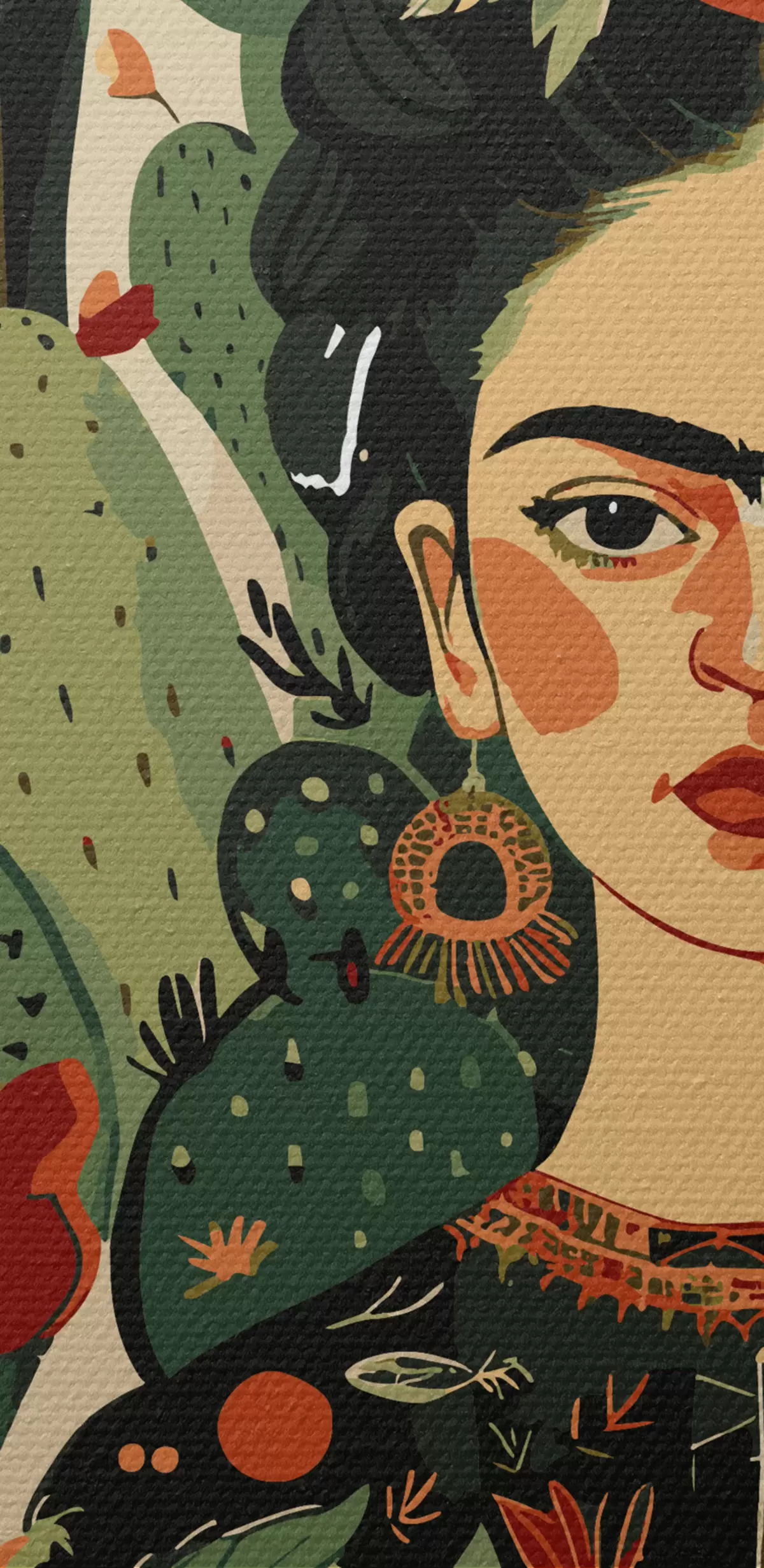 Кругла картина Фріда на тлі кактусового візерунка Nr r38415