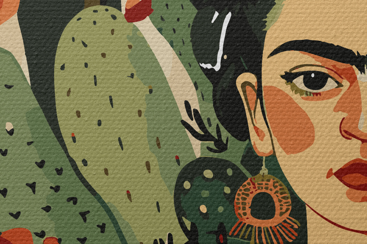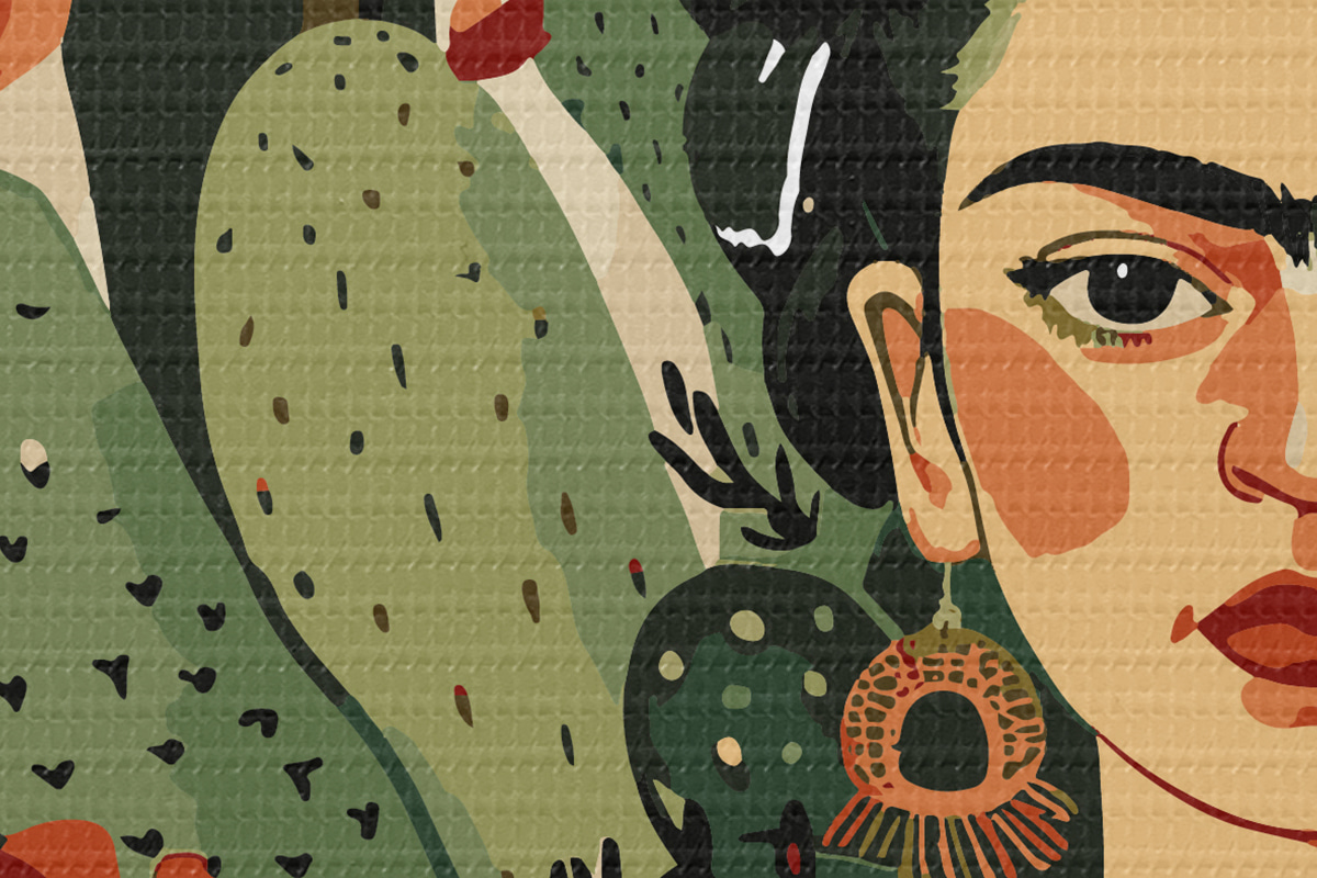 Кругла картина Фріда на тлі кактусового візерунка Nr r38415