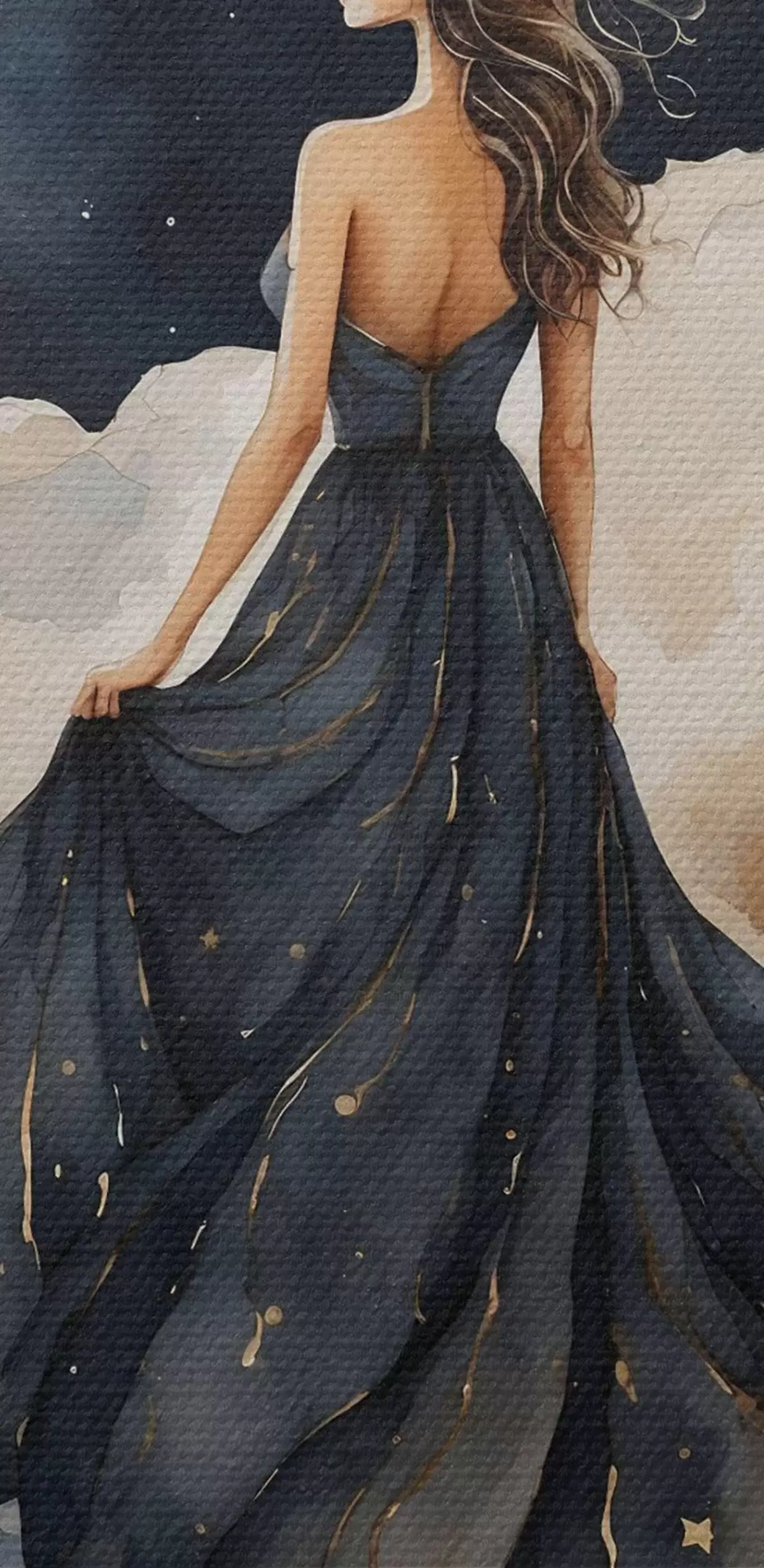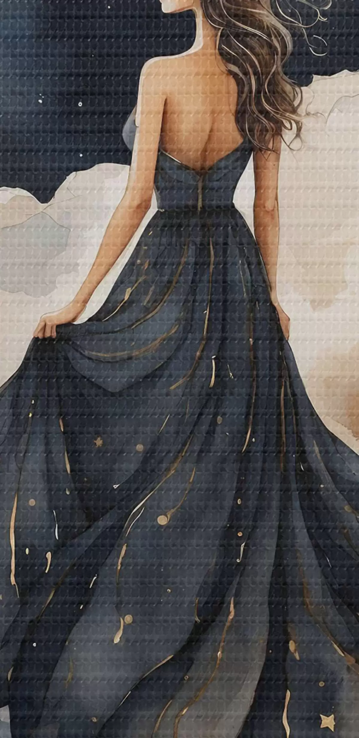 Кругла картина Жінка в блакитній сукні та місяць на небі Nr r38428