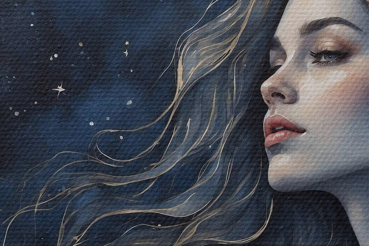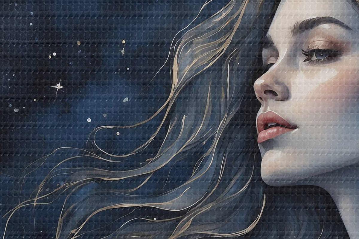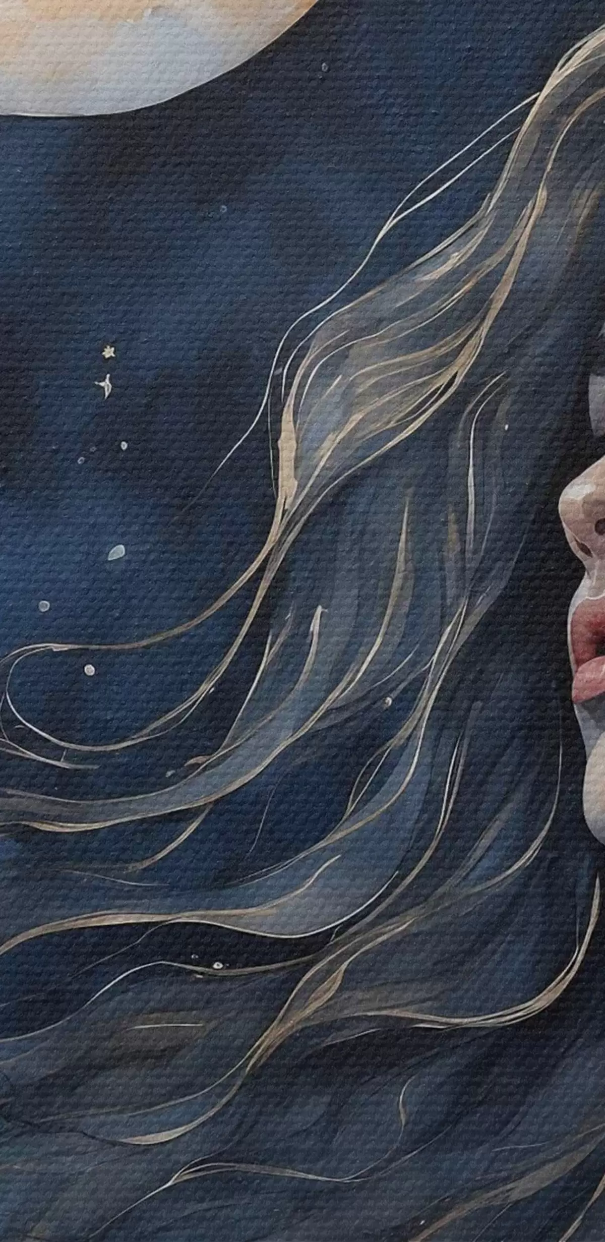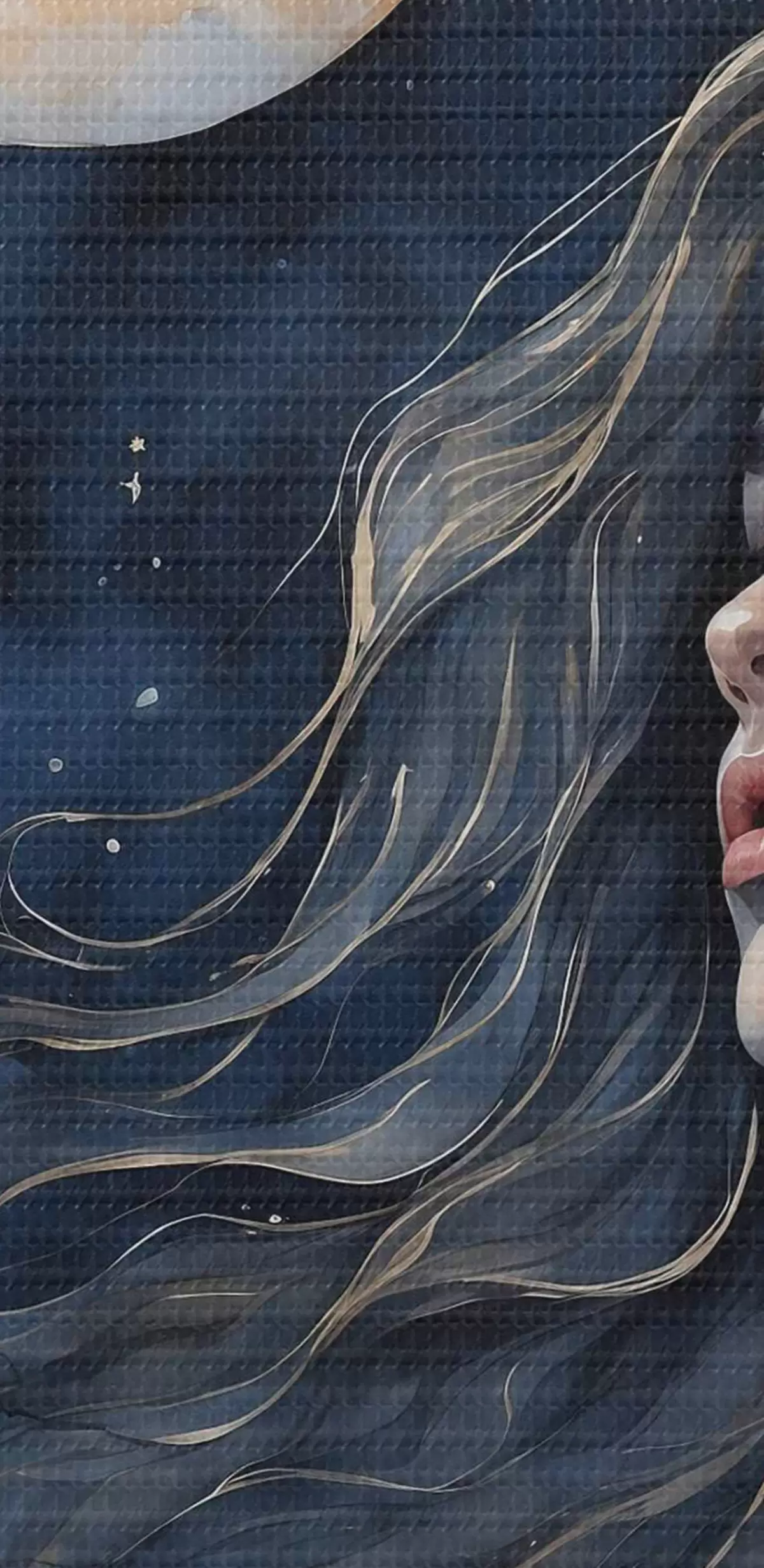 Кругла картина Жінка з довгим волоссям і місяць Nr r38438