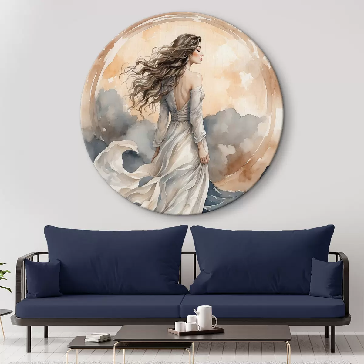Кругла картина Дівчина стоїть на хвилі Nr r38439