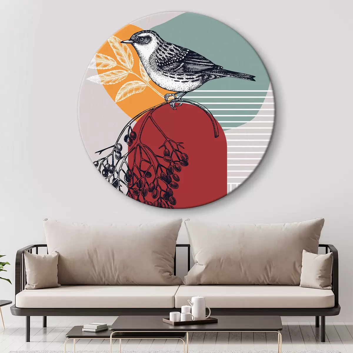 Кругла картина Пташка на гілці r38443