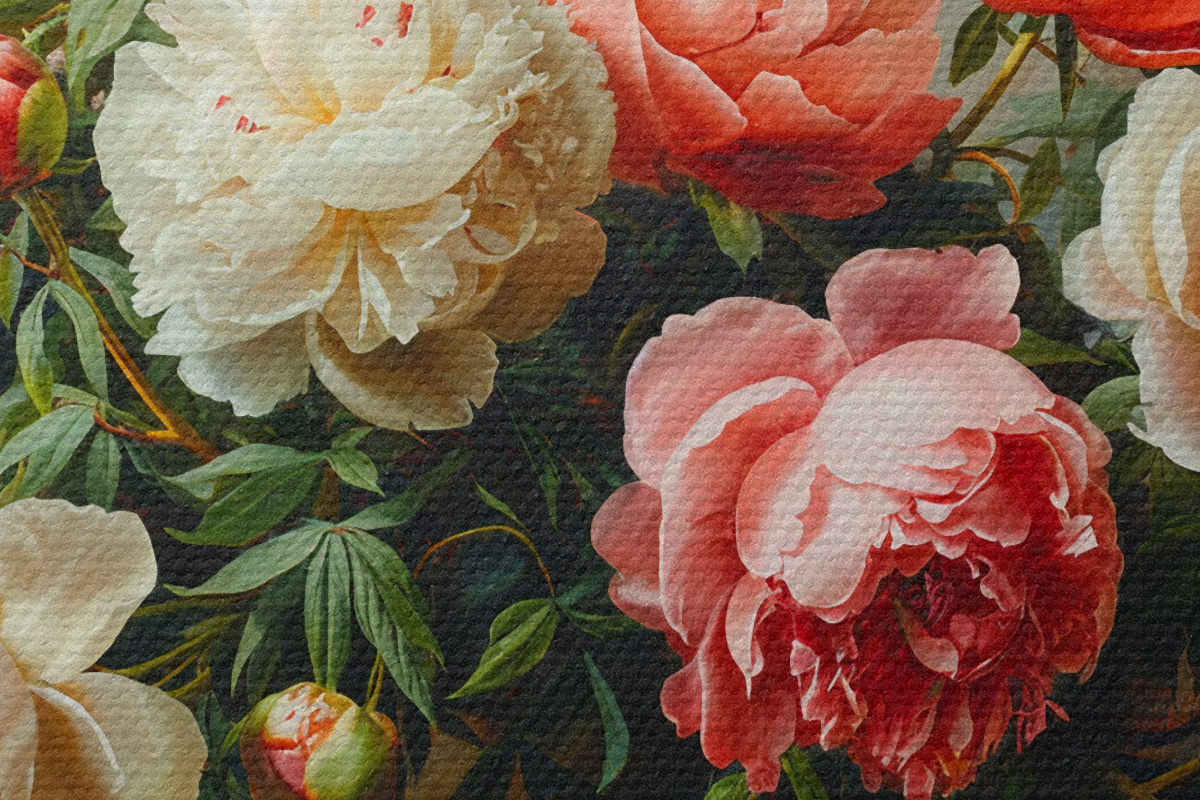 Кругла картина Пишний букет півоній і чорна ваза Nr r38460