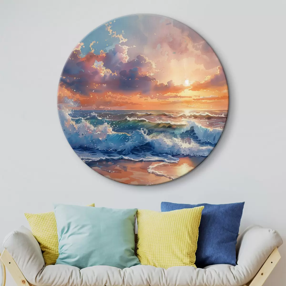Кругла картина Захід сонця на тлі хвиль Nr r38474