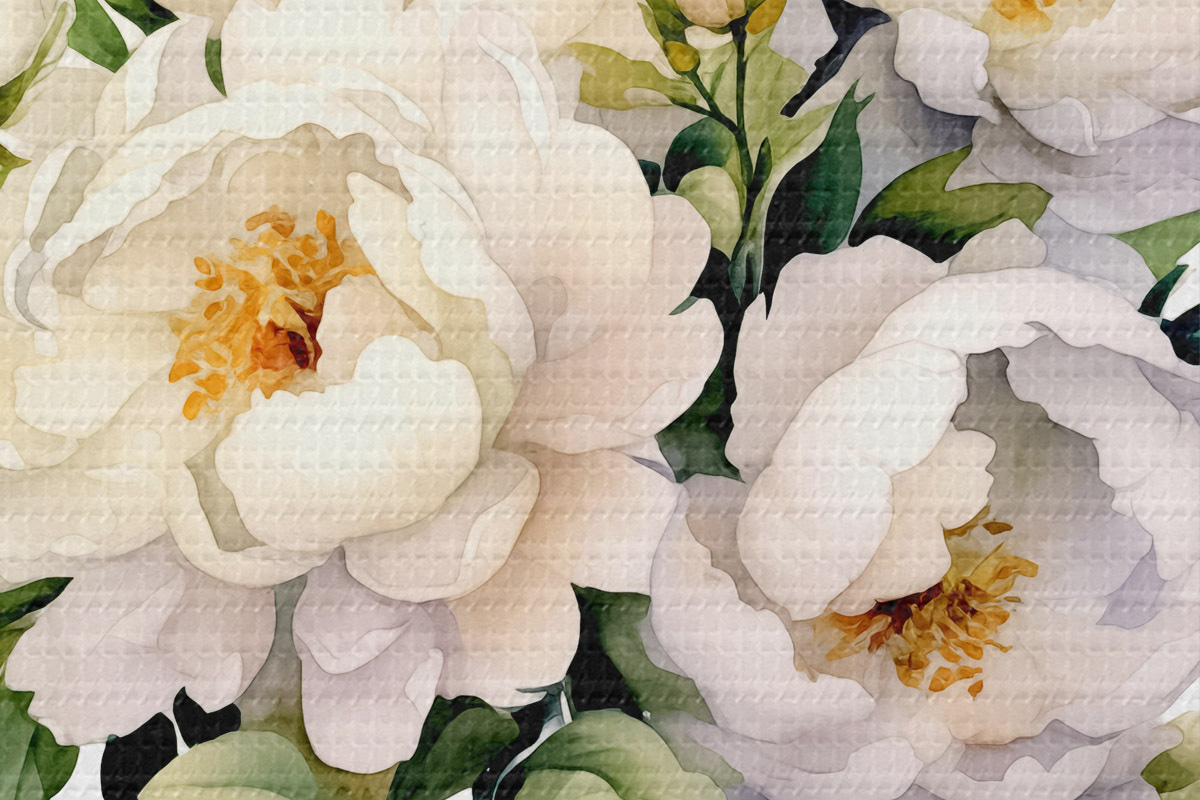 Кругла картина Білий квітучий півонія квіти в зелене листя, акварель, ботанічні r38481