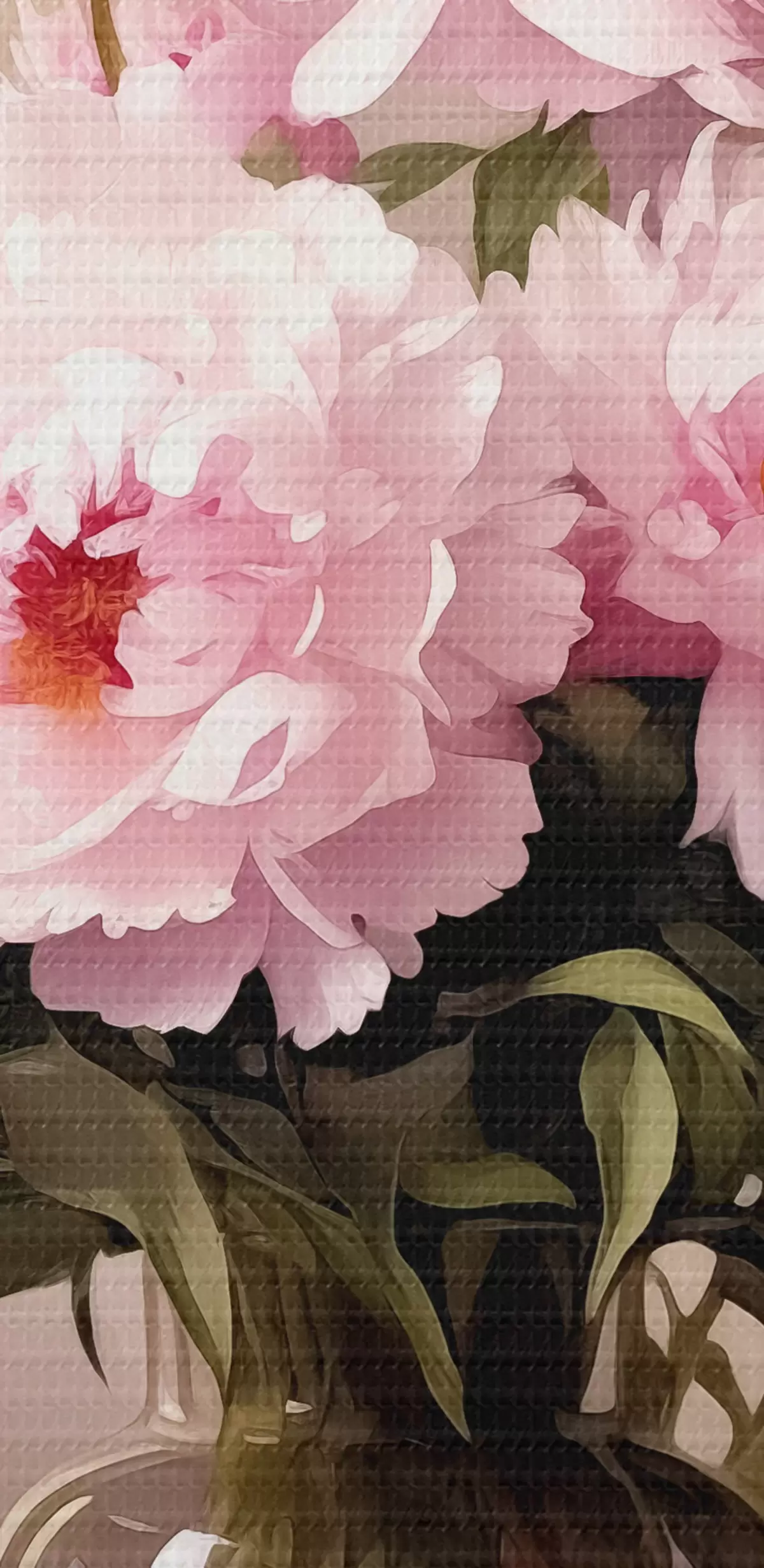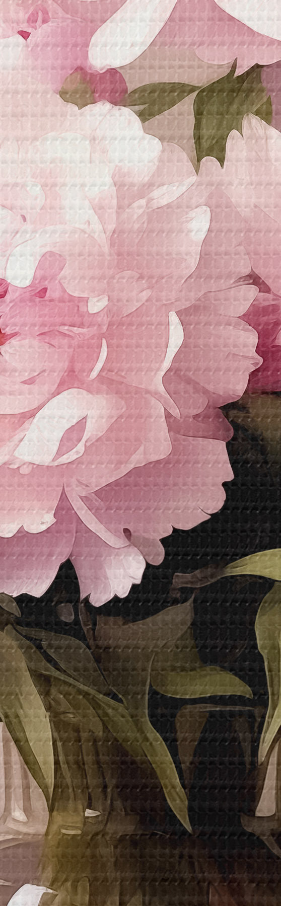 Кругла картина Рожеві півонії в скляній вазі на чорному тлі, імітація олійного живопису, квіти Nr r38482