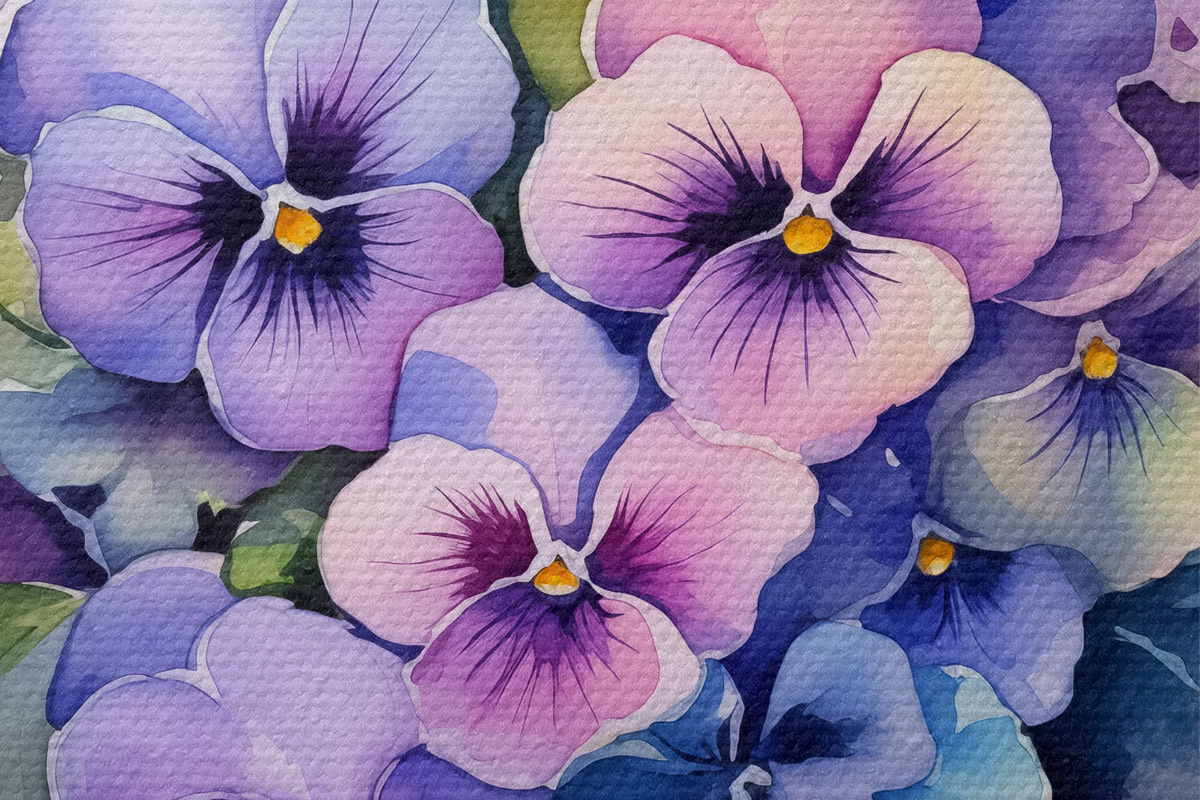 Кругла картина Фіалки аквареллю ілюстрації, букет, квіти, синій, фіолетовий, зелений колір r38486