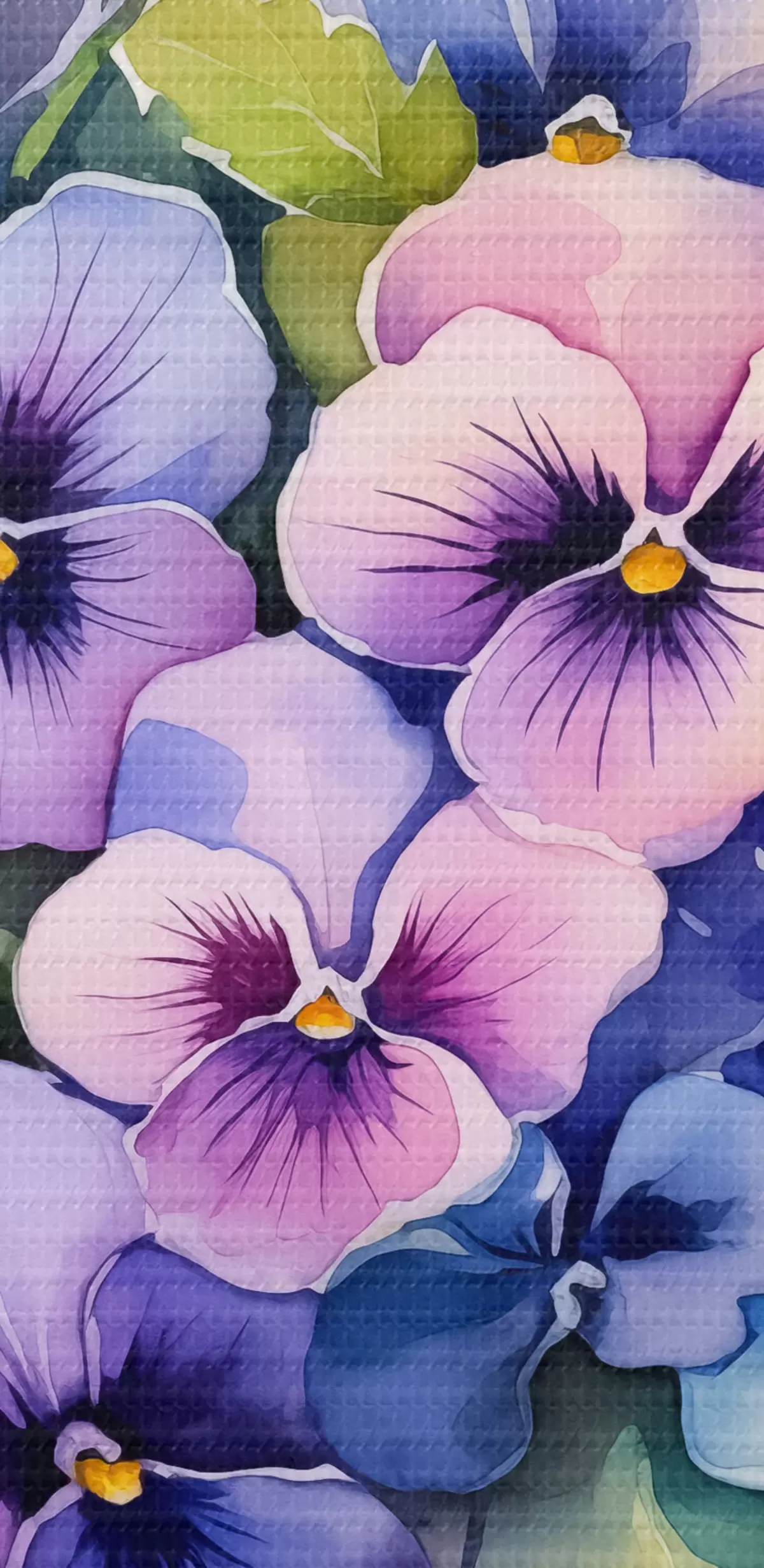 Кругла картина Фіалки аквареллю ілюстрації, букет, квіти, синій, фіолетовий, зелений колір Nr r38486