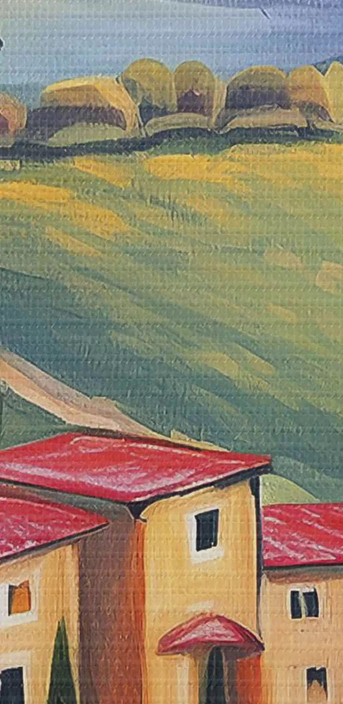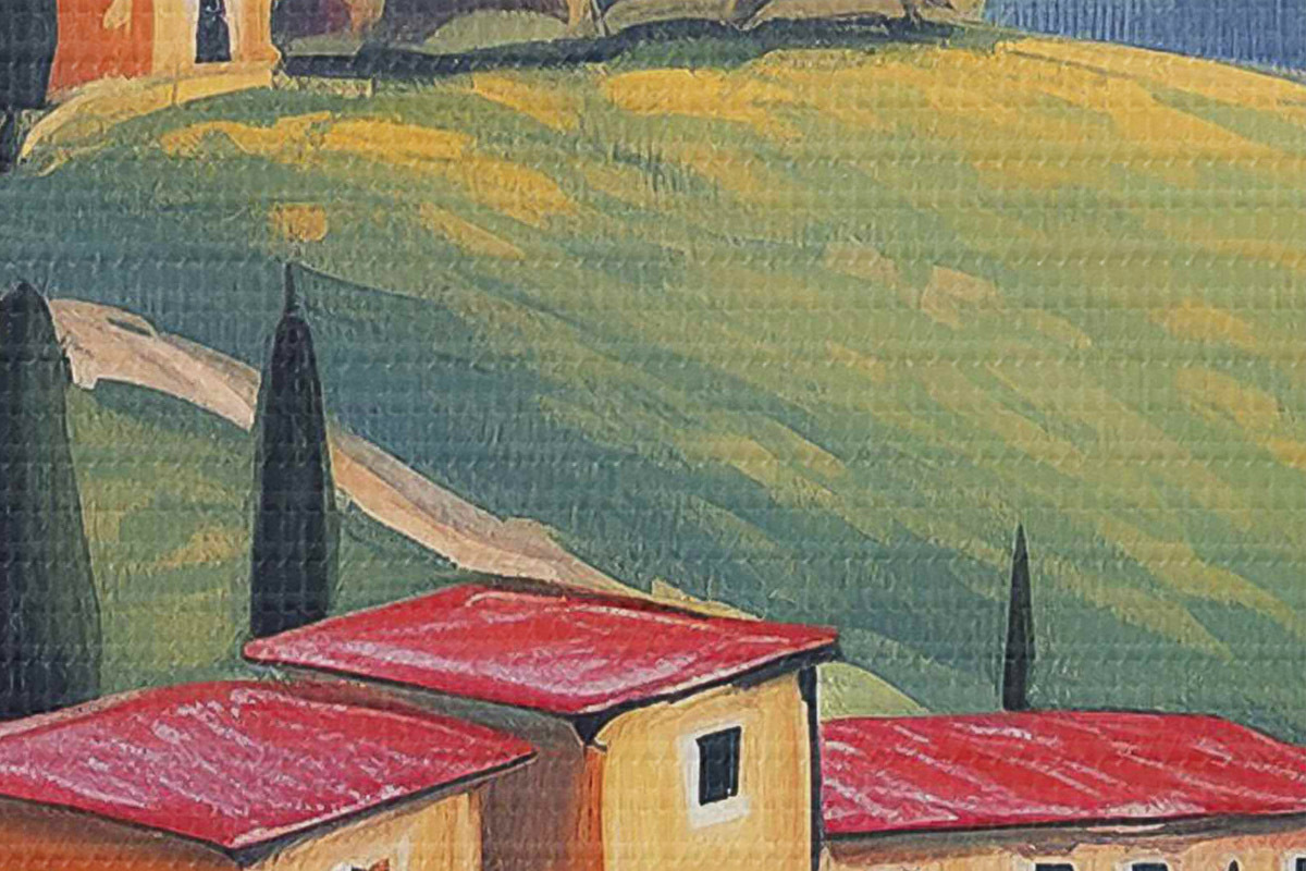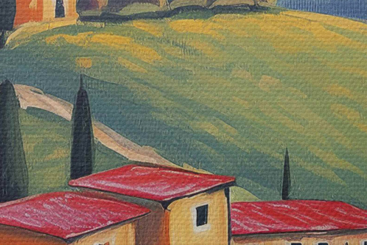Кругла картина Пейзажі Тоскани, Італія, акриловий живопис, старі будинки, поля, літо Nr r38488