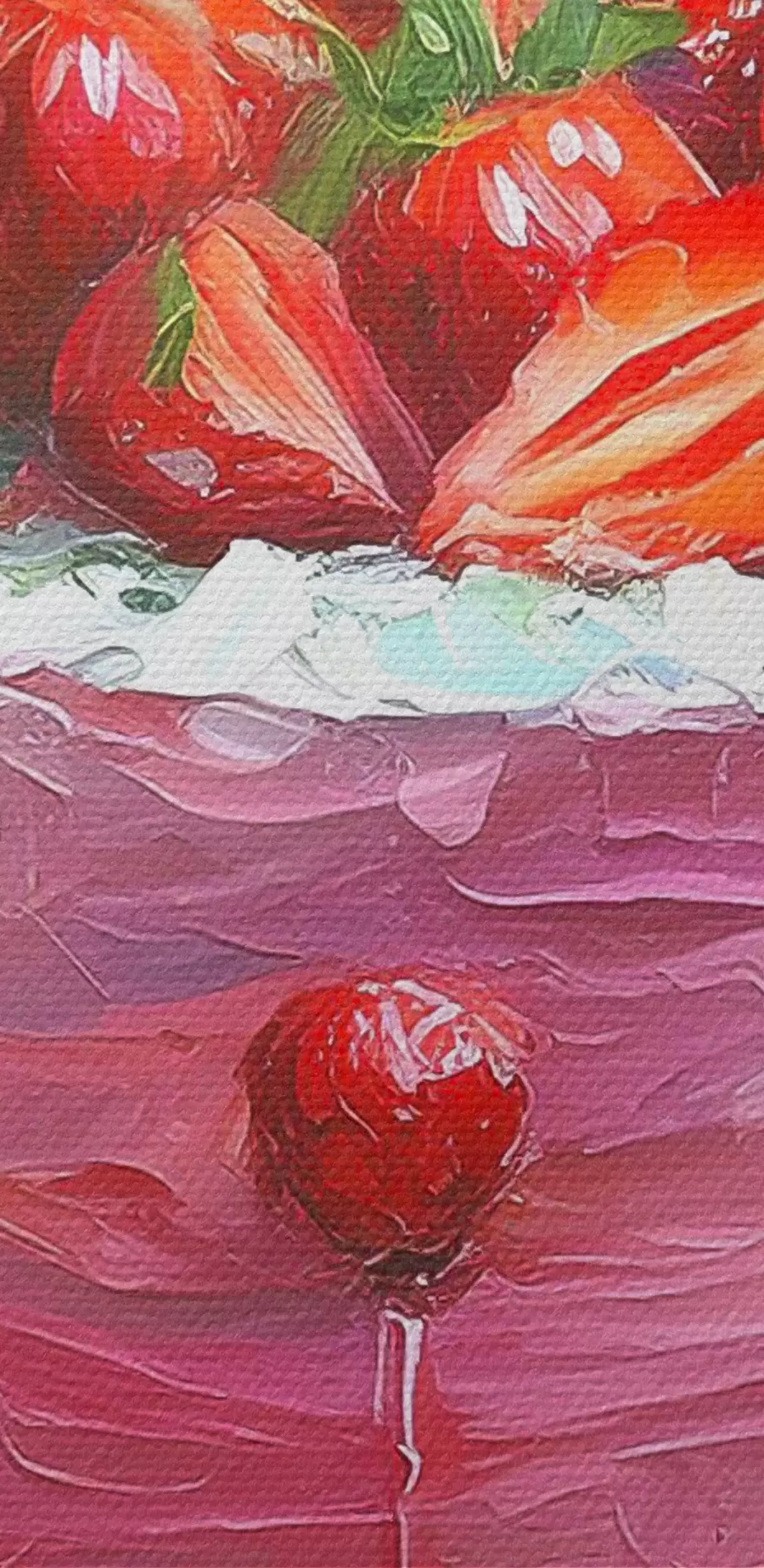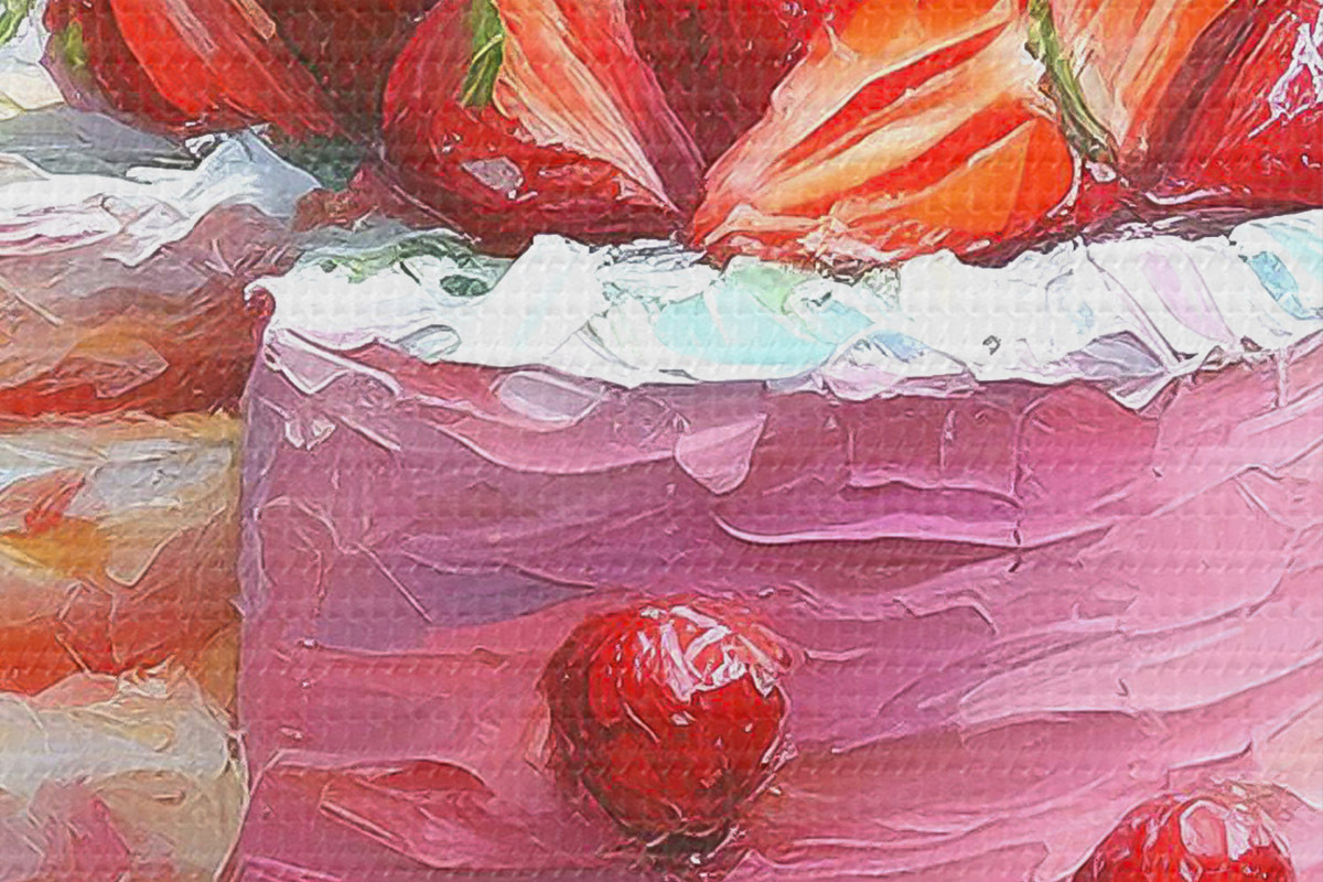 Кругла картина Полуничний торт з кремом, олійною фарбою, великими мазками, літні ягоди, рожеві кольори Nr r38499
