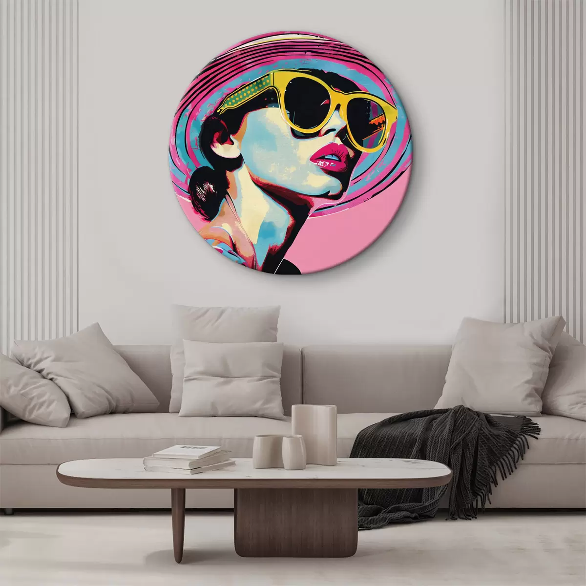 Кругла картина Барвистий портрет стильної жінки в сонцезахисних окулярах Nr r38508