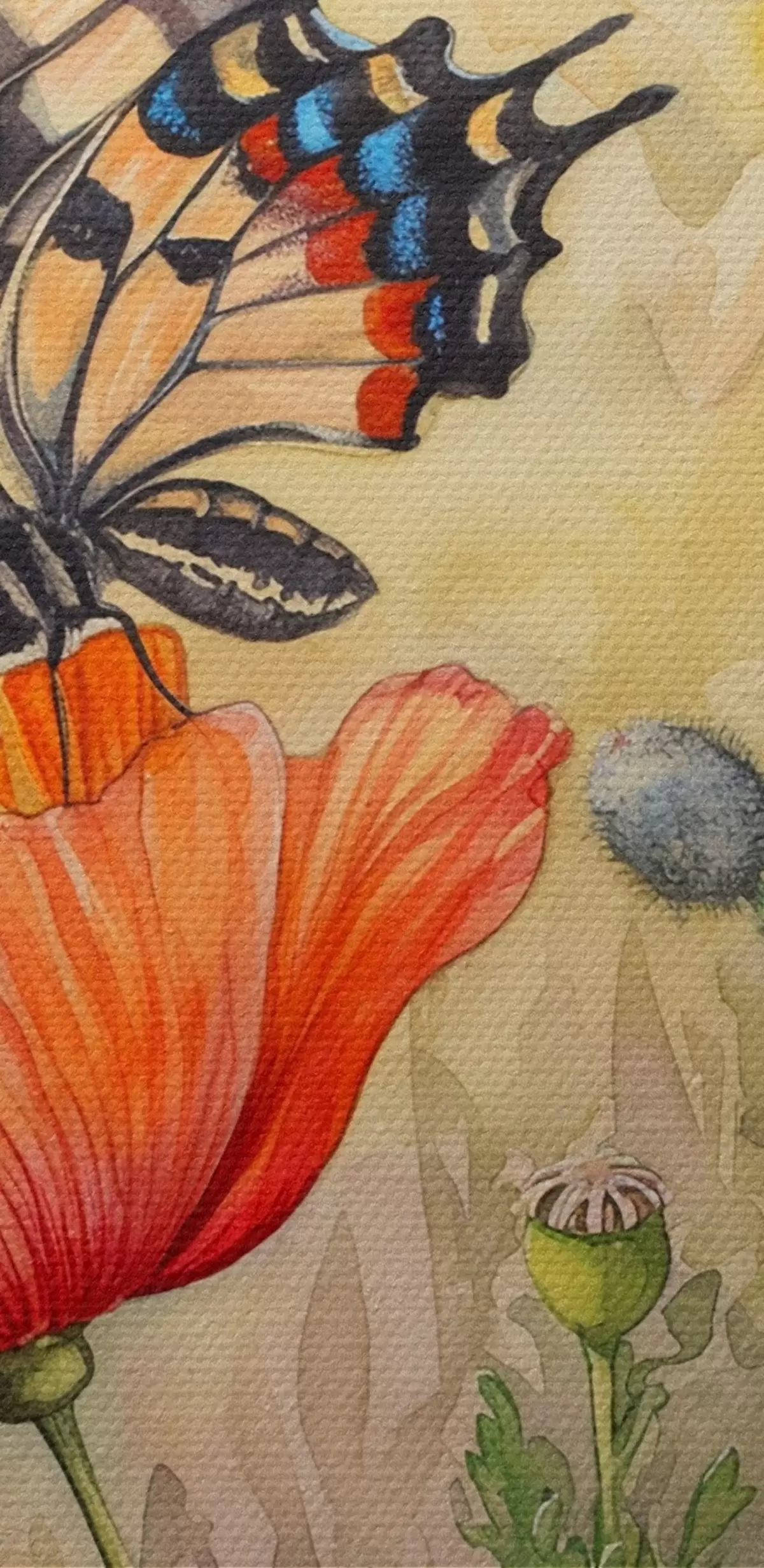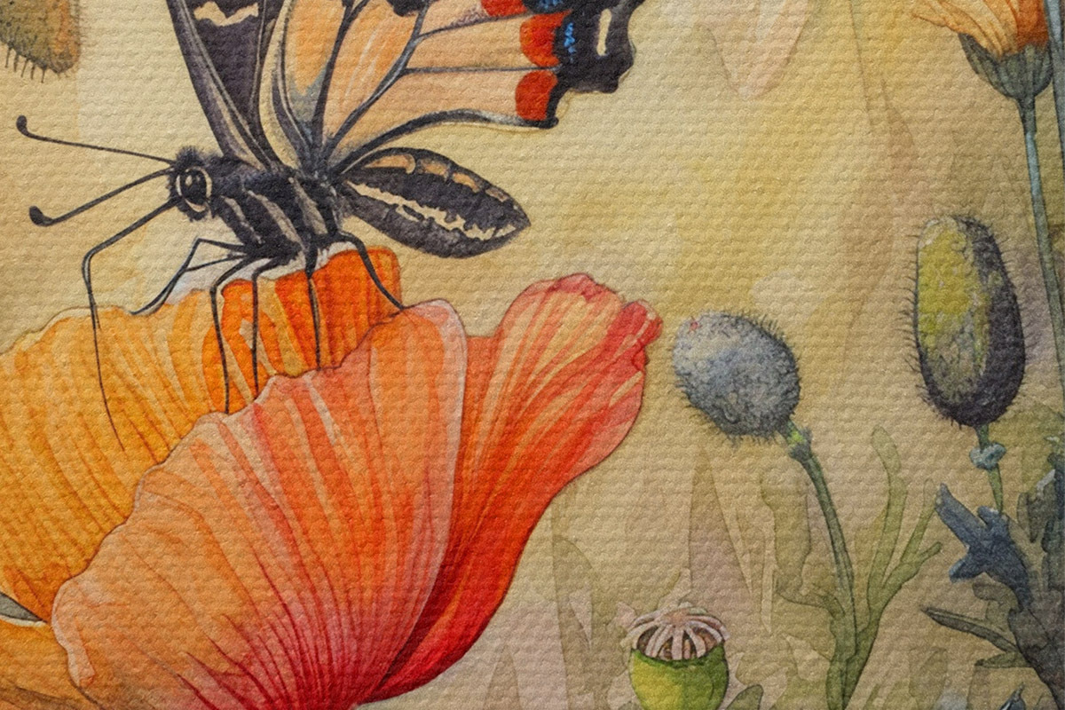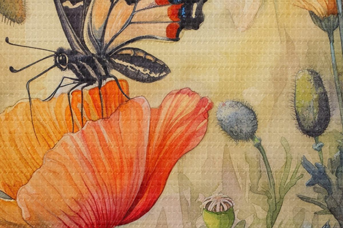 Кругла картина Поле маків і метелик r38520