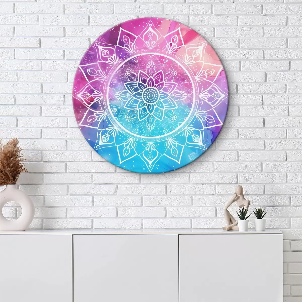 Кругла картина Біла мандала на кольоровому тлі r38529