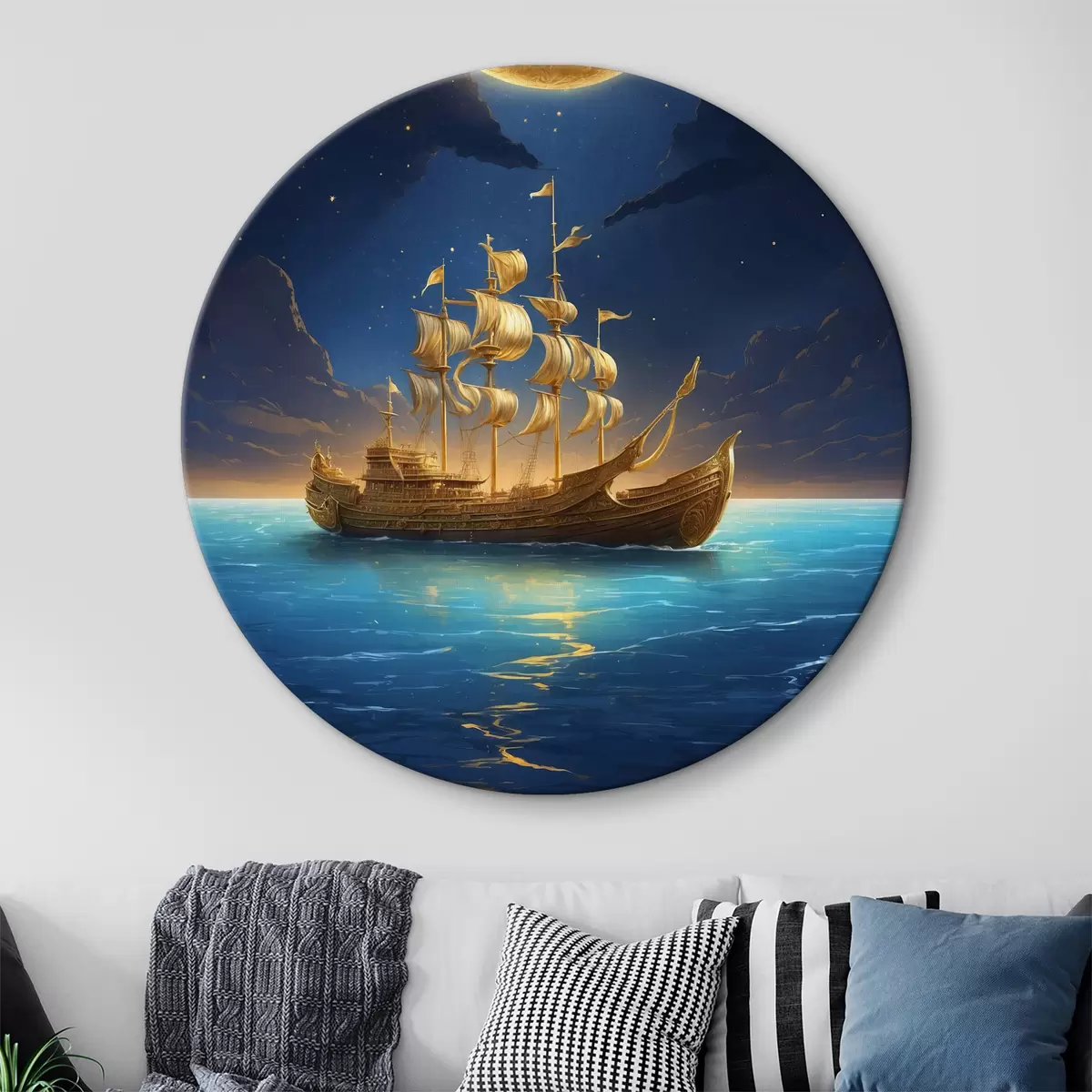 Кругла картина Човен на воді з місяцем на задньому плані Nr r38587