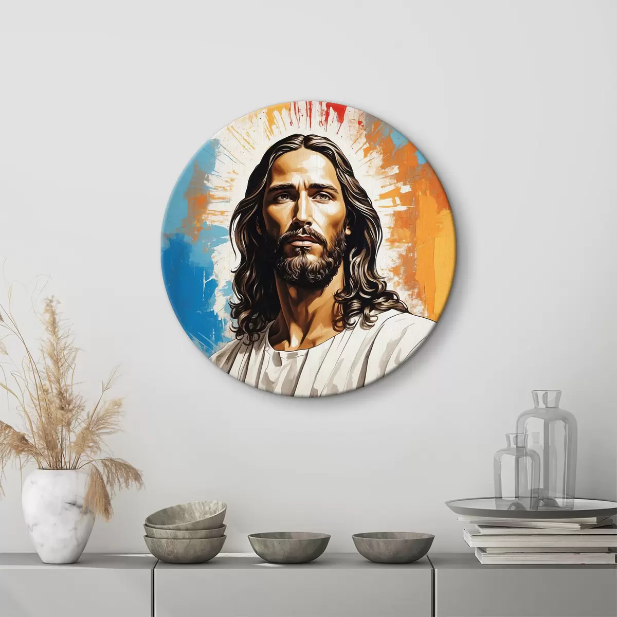 Кругла картина Зображення чоловіка з довгим волоссям Nr r38589