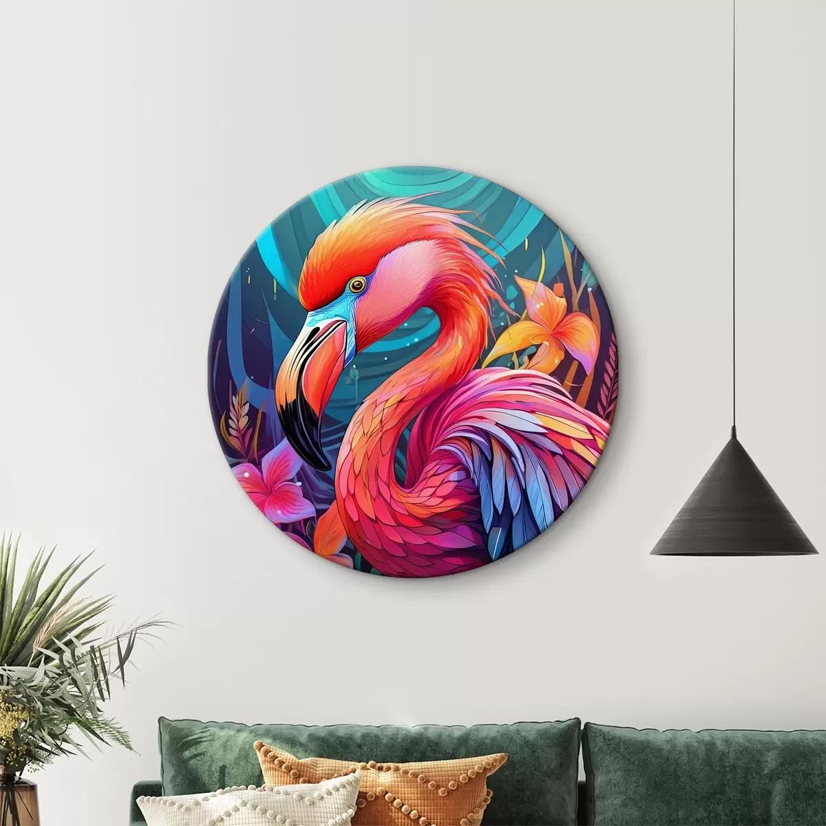 Кругла картина Барвистий рожевий фламінго з квітами Nr r38609