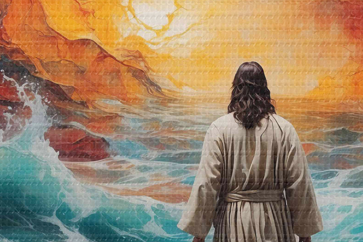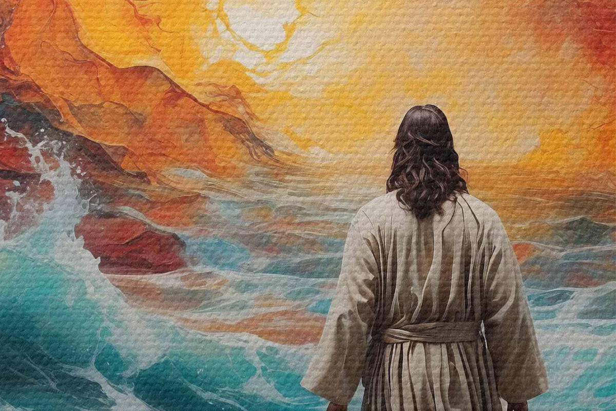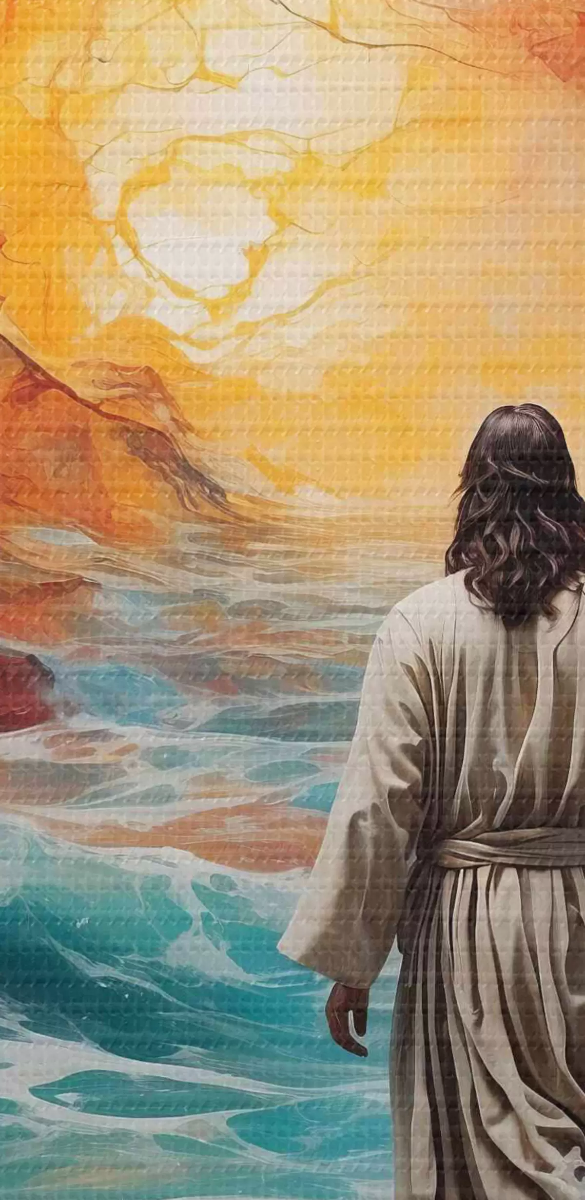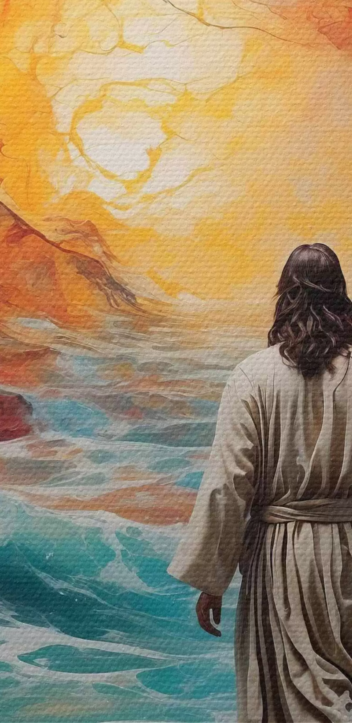 Кругла картина Людина йде між вогненним небом і морем Nr r38612