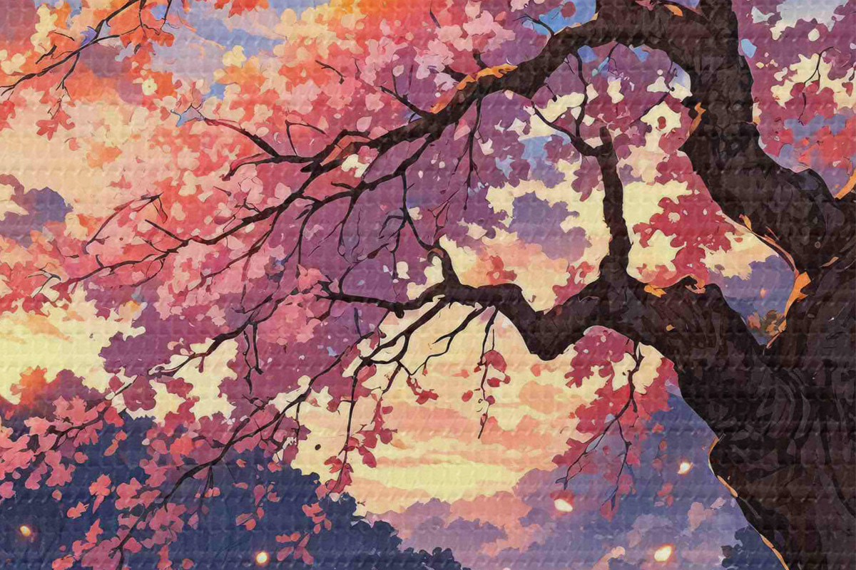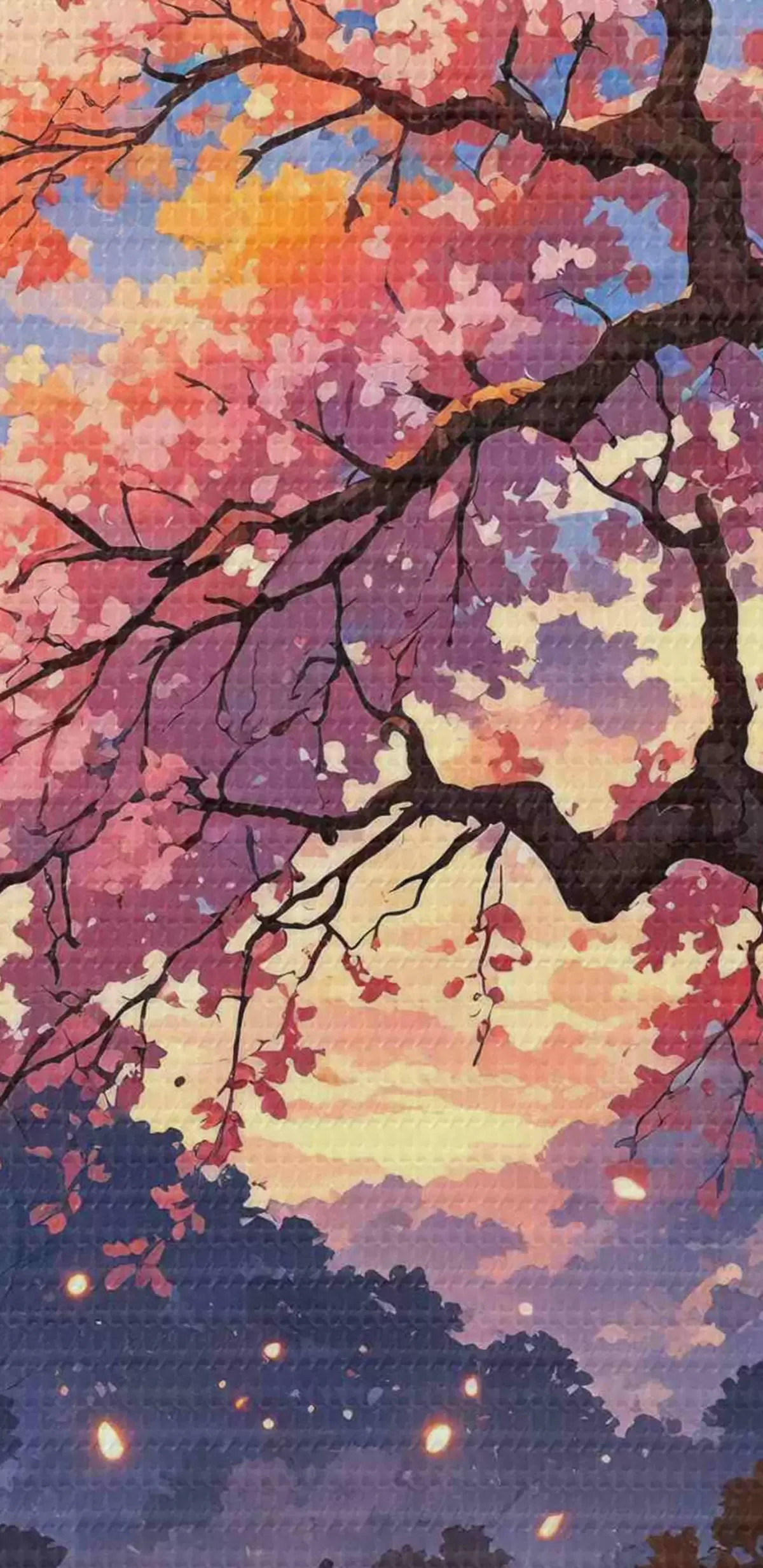 Кругла картина Дерево з рожевими квітами, яке перетинає річка r38645