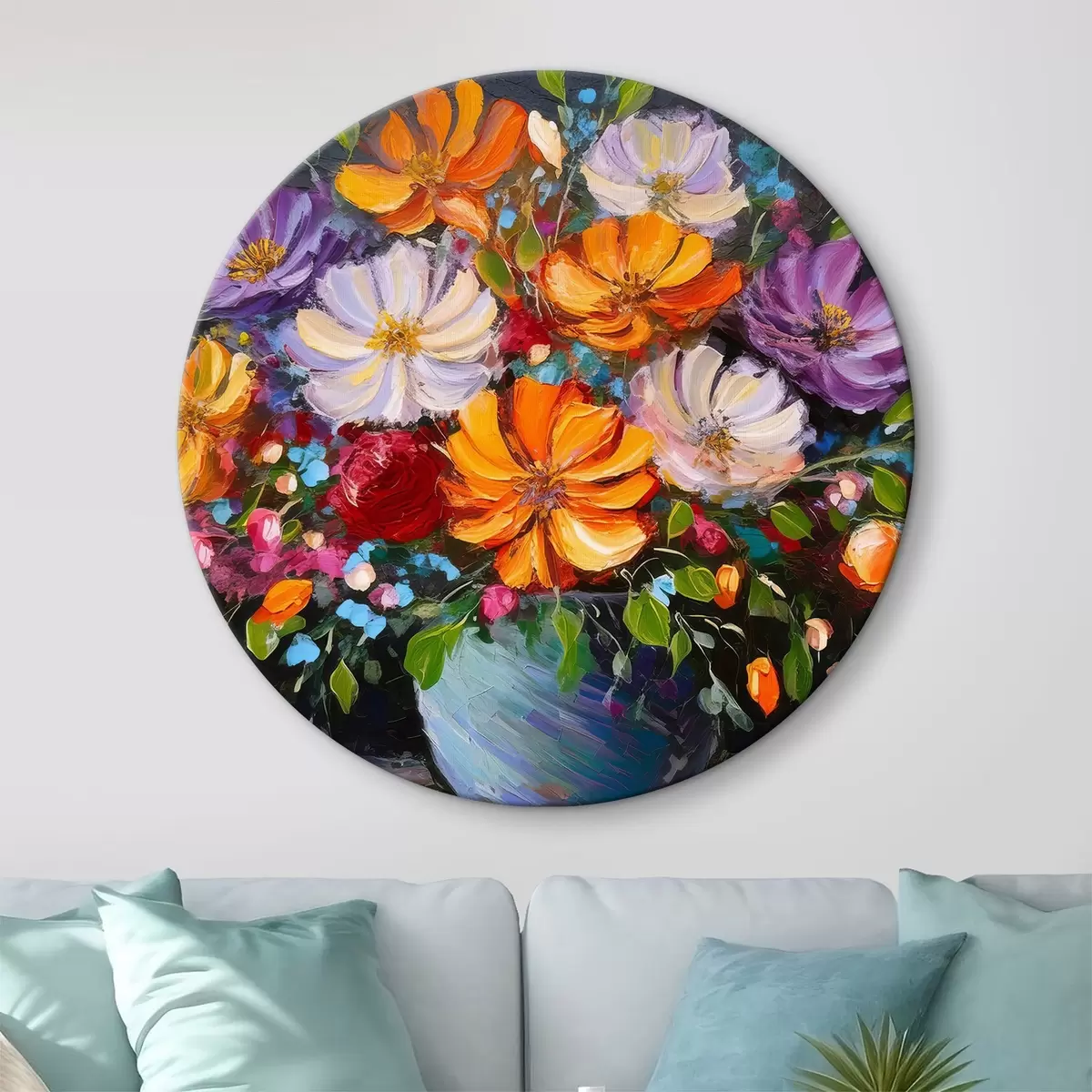 Кругла картина Зображення квітів у синій вазі r38658