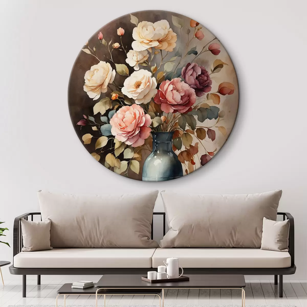 Кругла картина Букет рожевих троянд у вазі Nr r38685