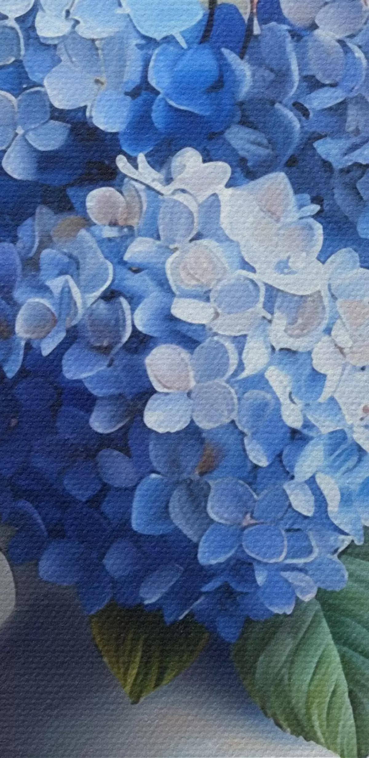 Кругла картина Букет блакитних гортензій у білій вазі Nr r38696