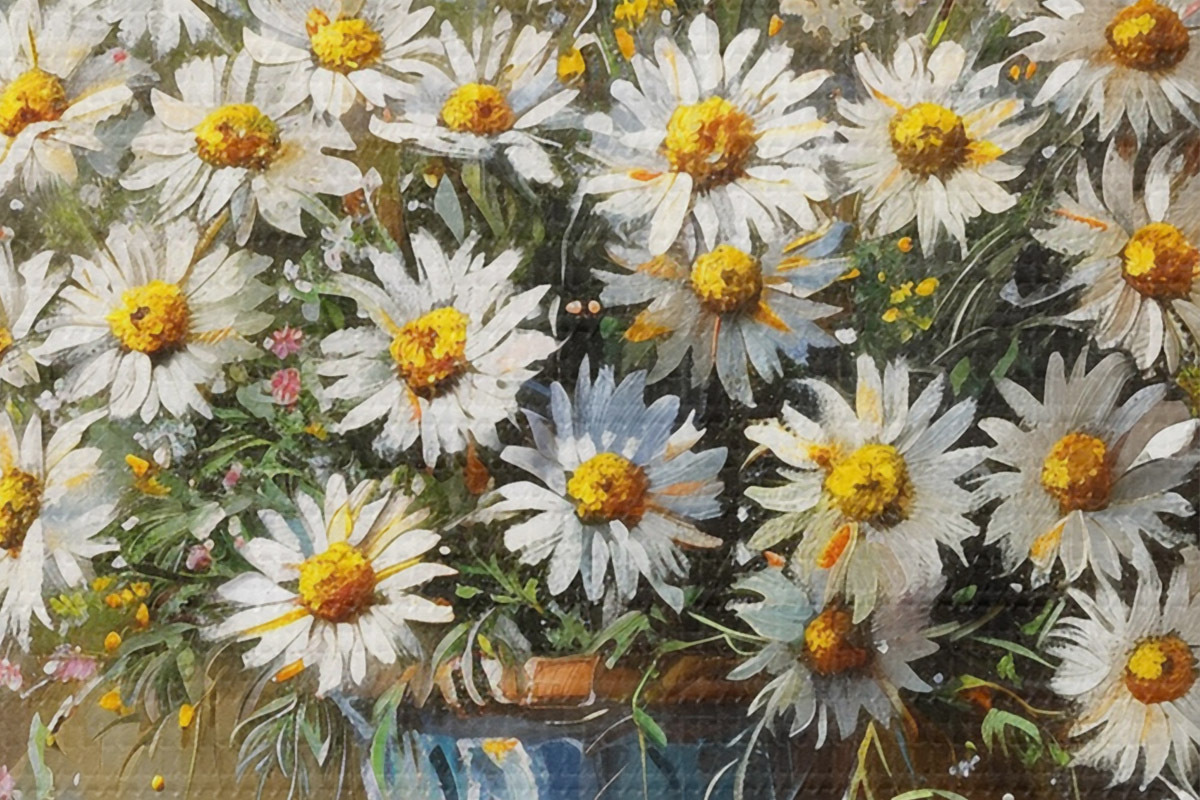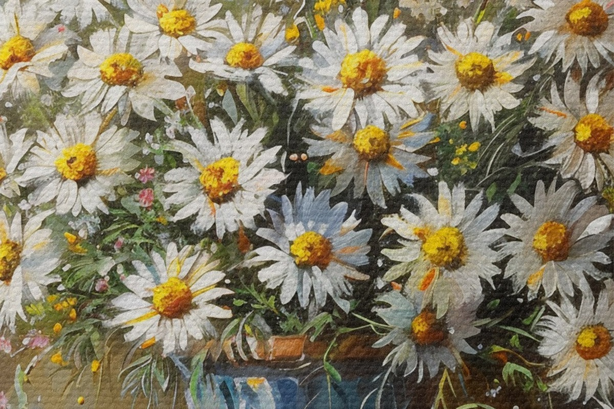 Кругла картина Ваза з ромашками на столі Nr r38707