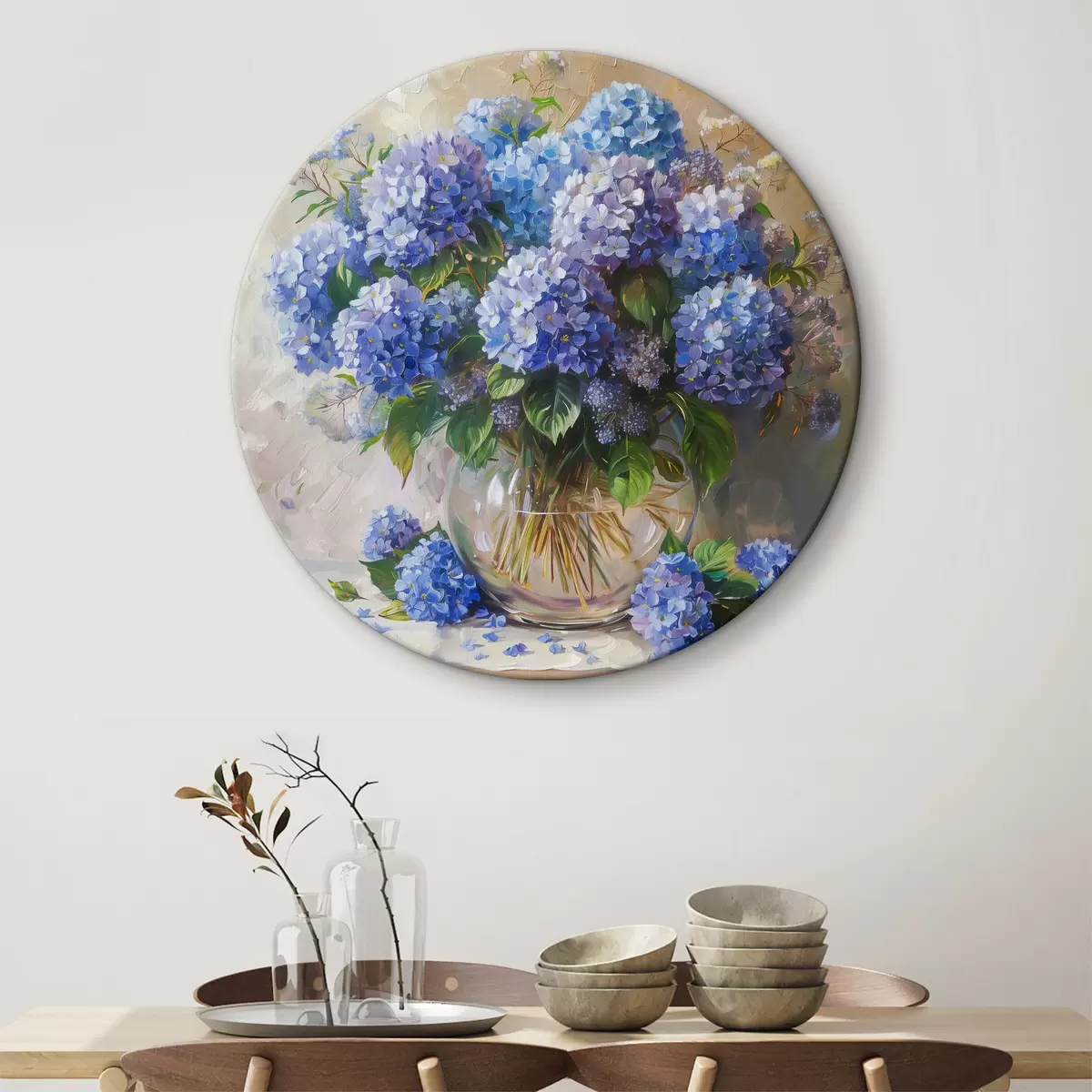 Кругла картина Сині гортензії на столі Nr r38709