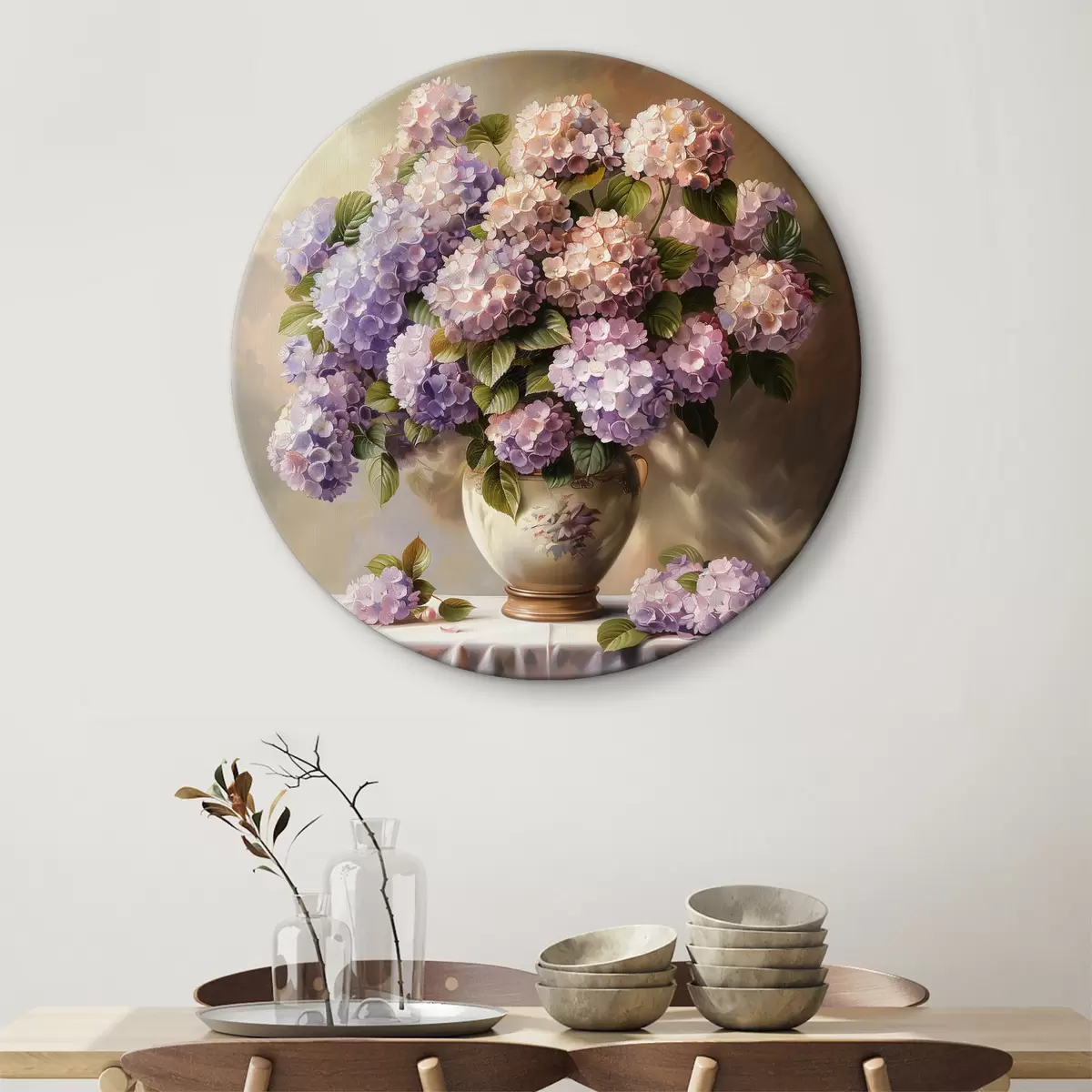 Кругла картина Ніжні гортензії на столі Nr r38710