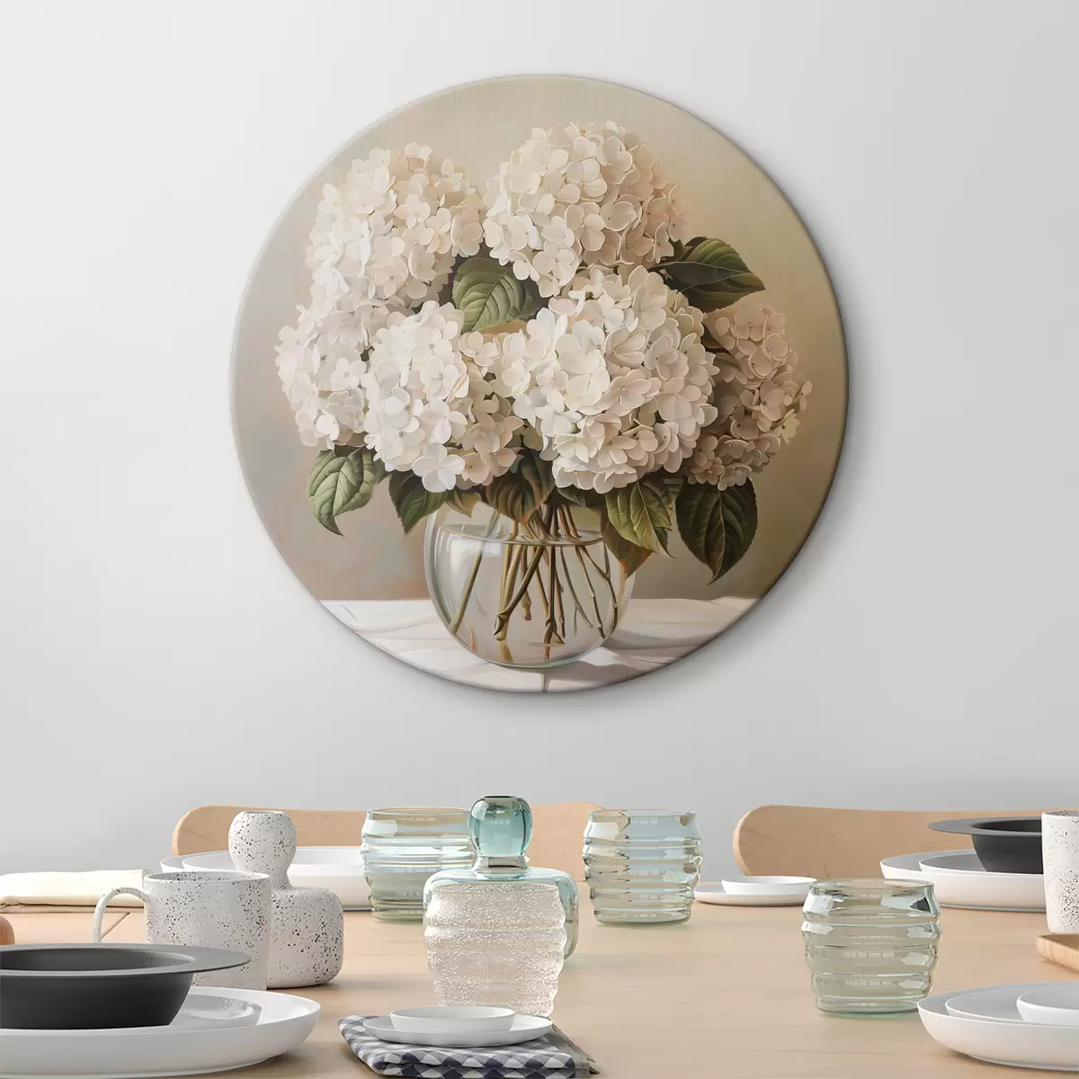 Кругла картина Букет білих гортензій Nr r38711