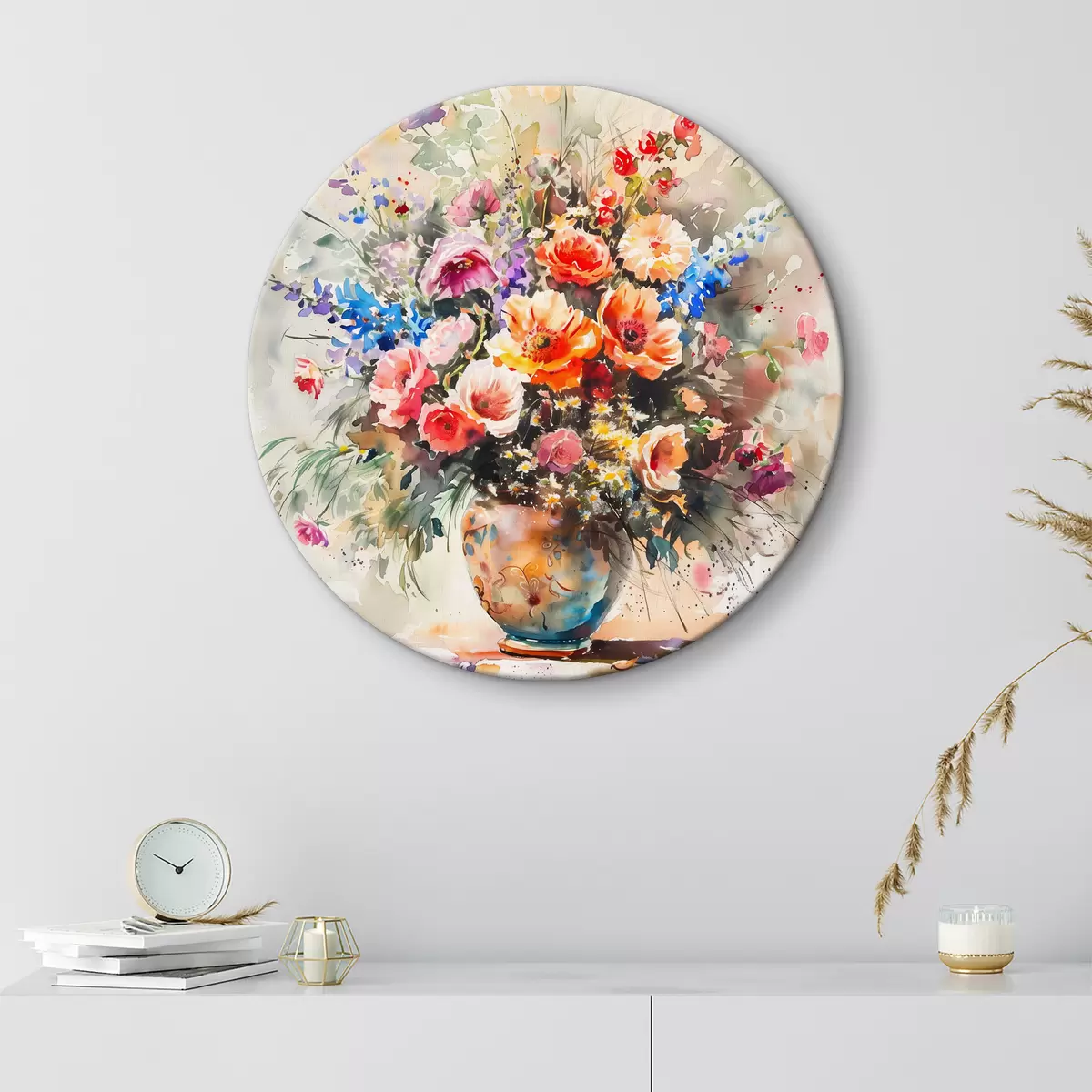 Кругла картина Букет польових квітів у вазі Nr r38713
