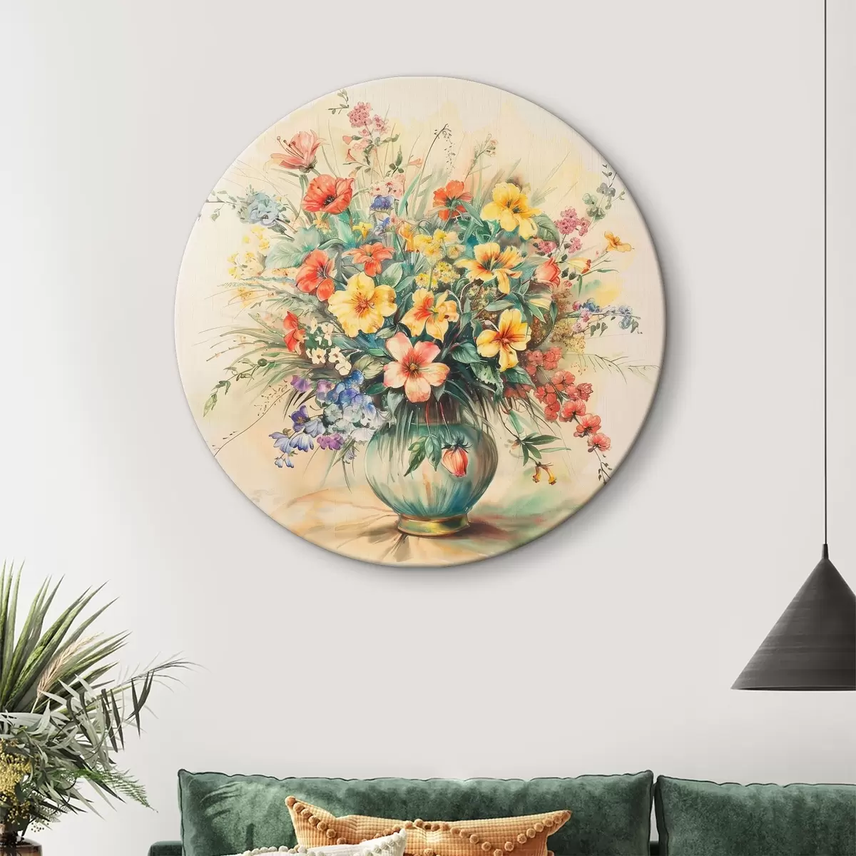 Кругла картина Букет польових квітів у вазі Nr r38714