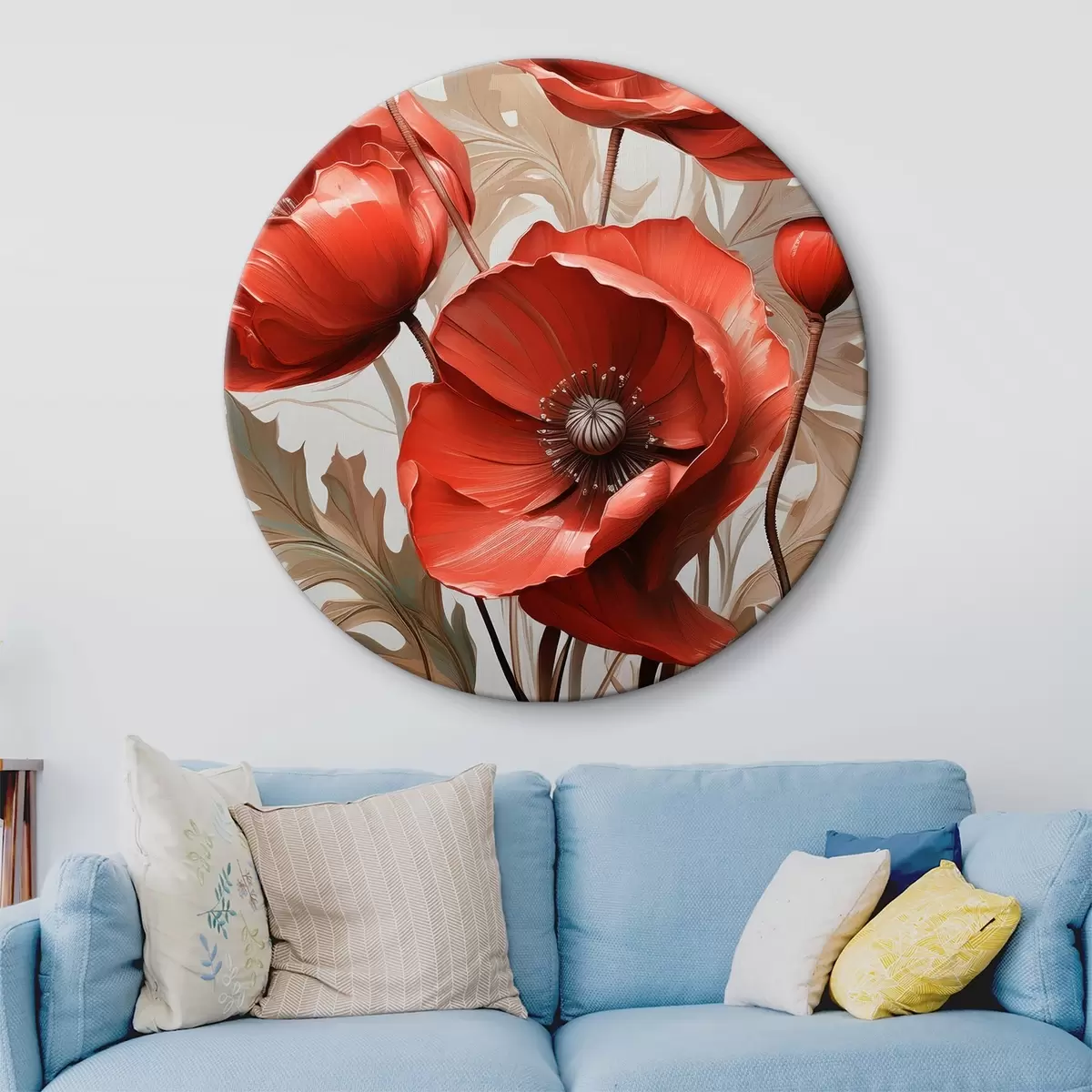 Кругла картина Великі червоні маки олійними фарбами Nr r38732